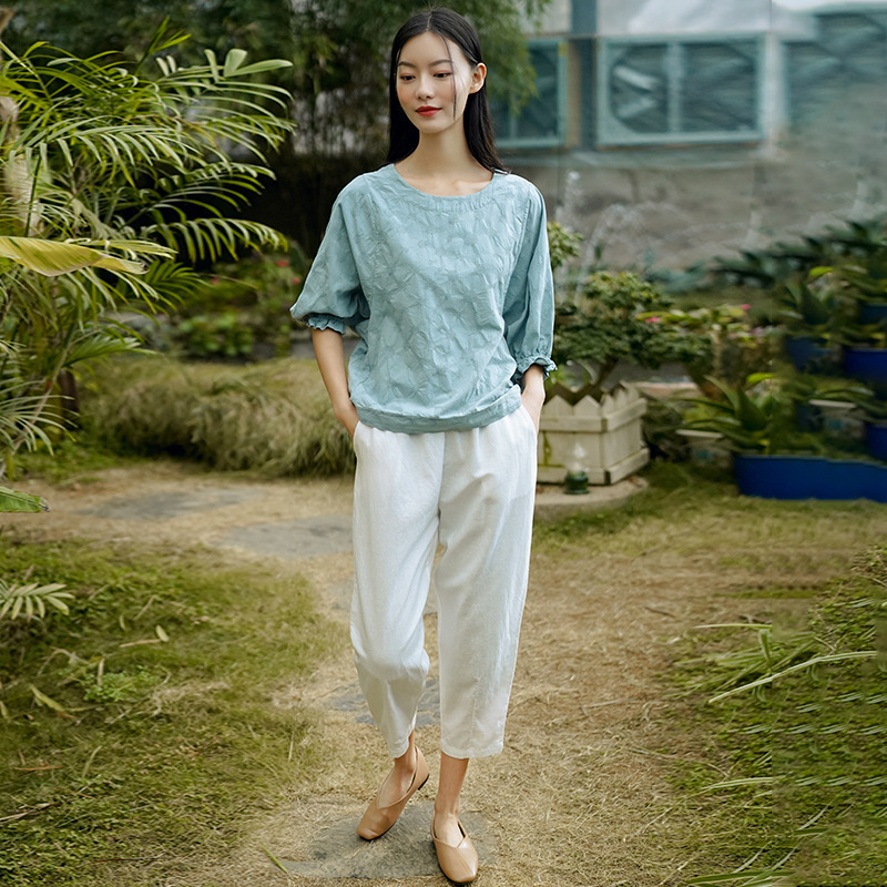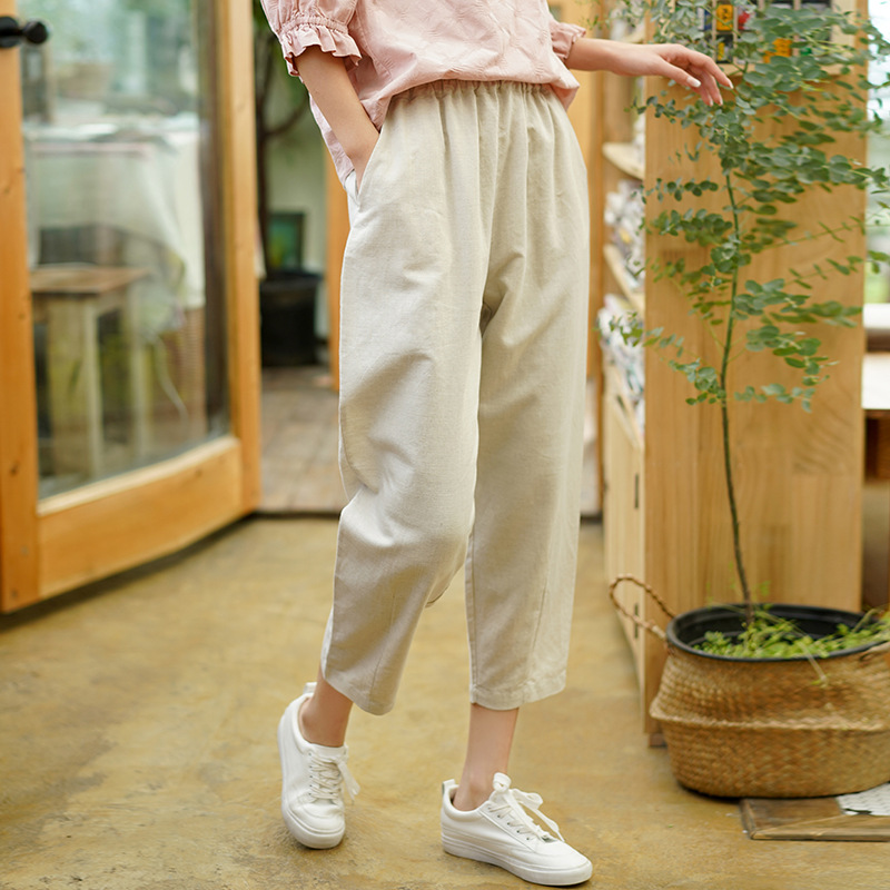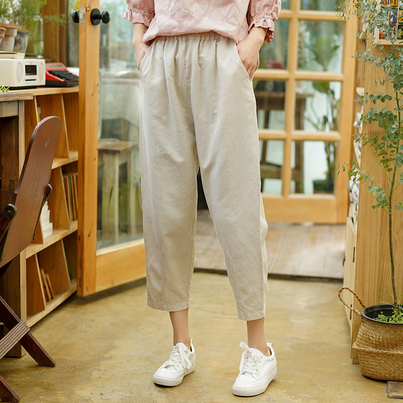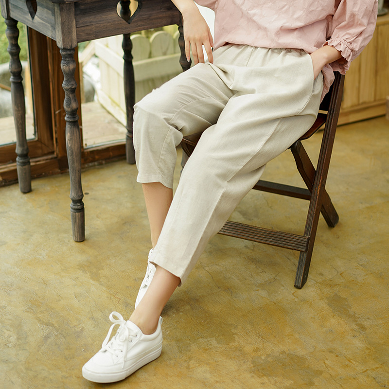 棉麻女装春夏新款裤子女薄文艺宽松九分显瘦休闲萝卜裤