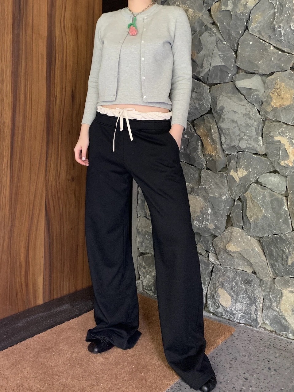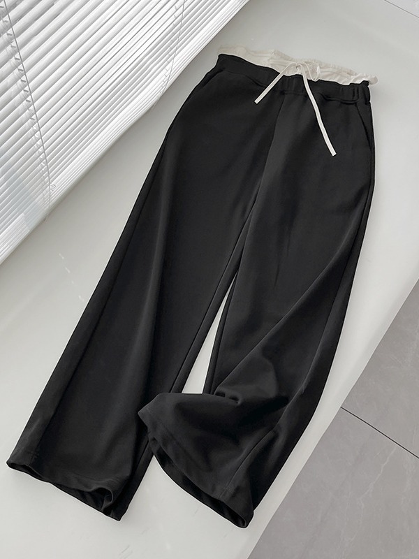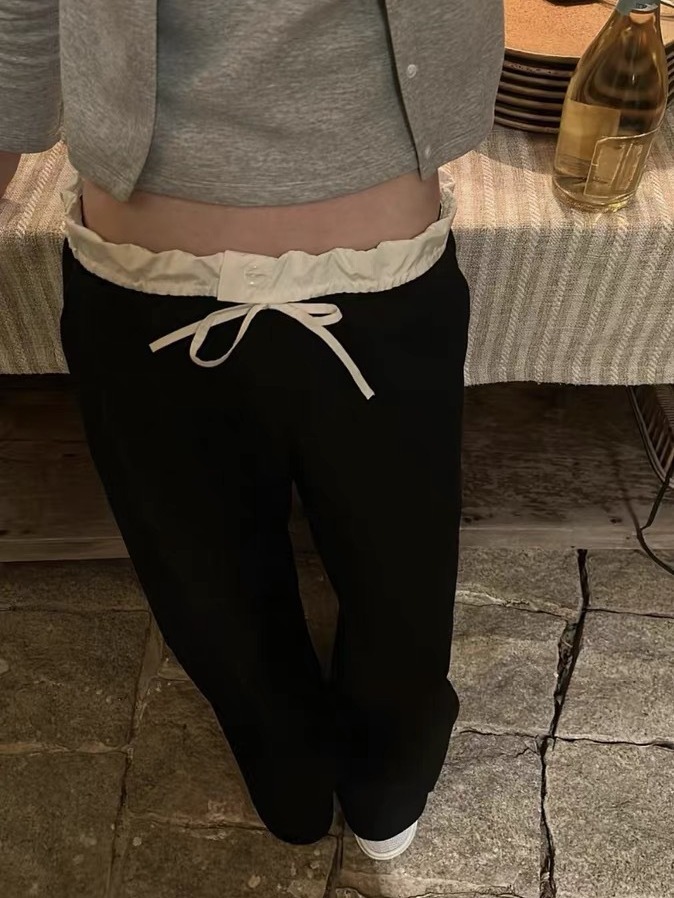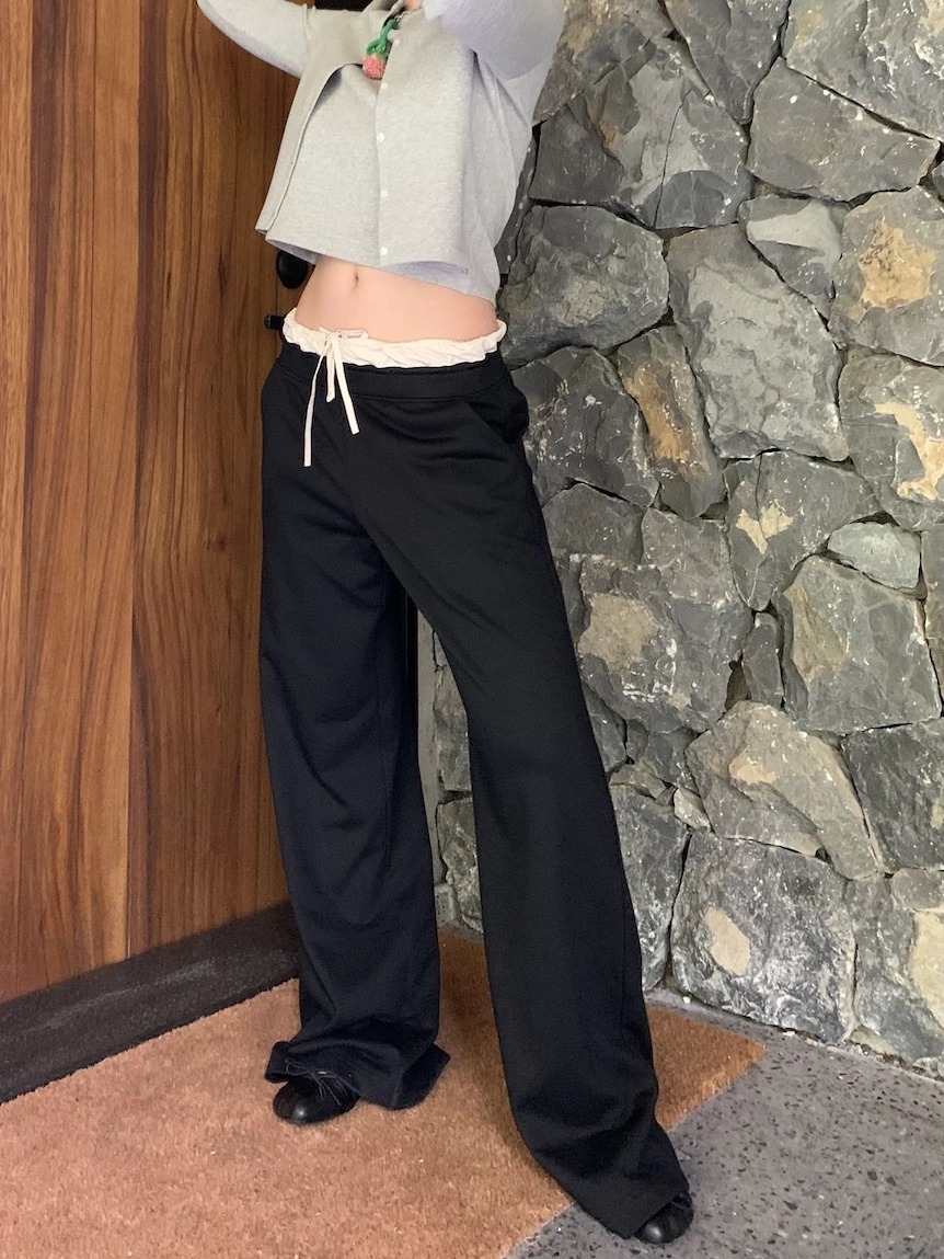 新款叠穿撞色设计假两件双腰拼接抽绳卫裤女直筒运动休闲长裤3243