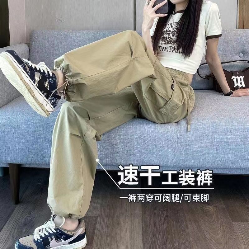 美式工装裤女夏薄款新款休闲束脚松紧腰窄版阔腿直筒裤高腰