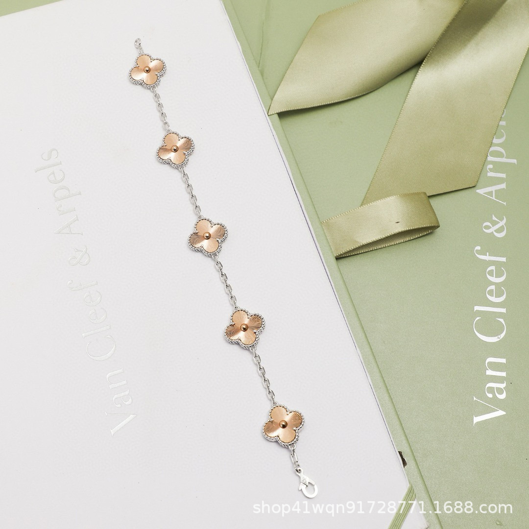 高版四叶草圣诞限定款白金镭射五花手链女合金时尚轻奢高级感手饰