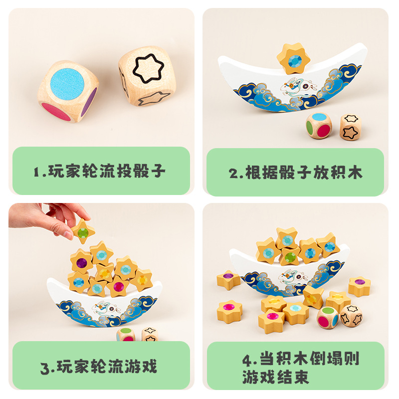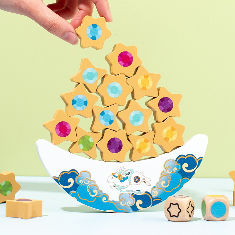 新品木制星月亮平衡积木幼儿手眼协调动作训练早教益智力玩具