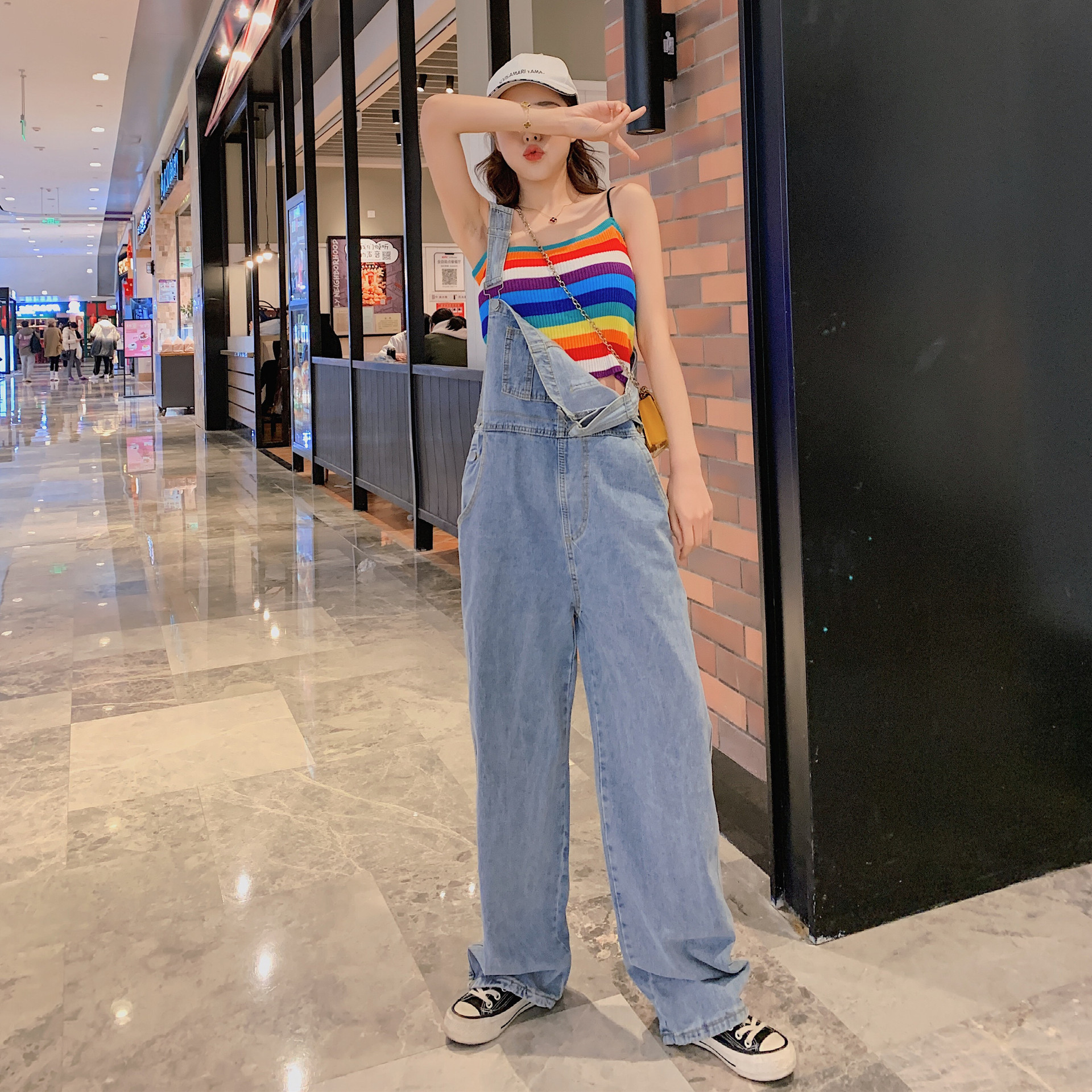网红拖地裤春夏新款长裤韩版宽松大码高腰阔腿牛仔裤背带裤女