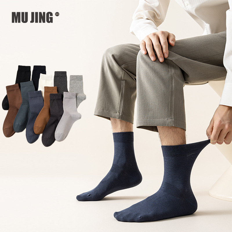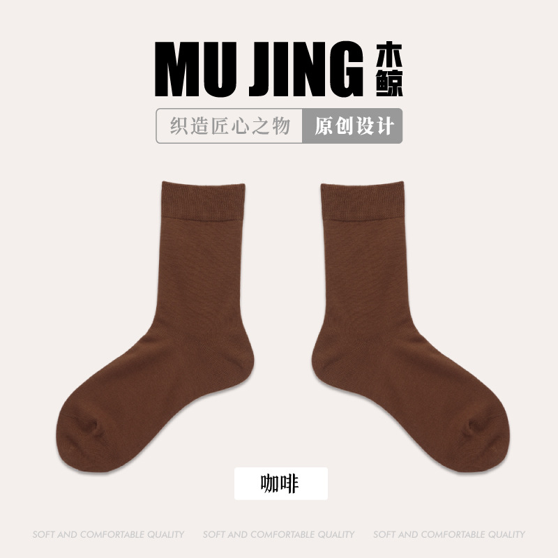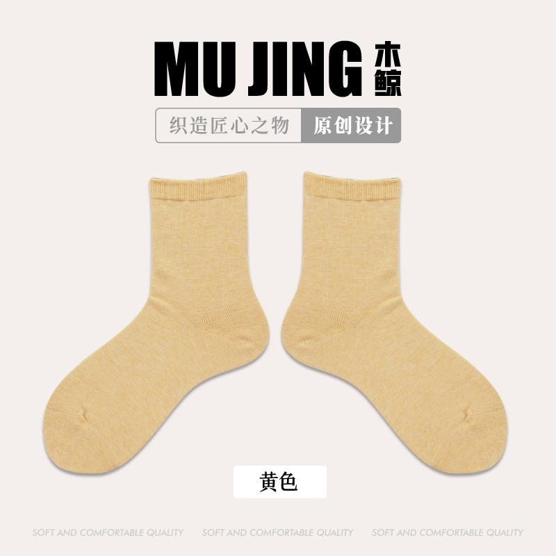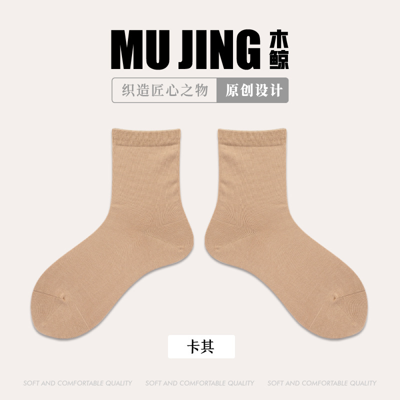 诸暨袜业春夏商务中筒袜子男纯色平板纯棉不起球抗菌全棉防臭女袜