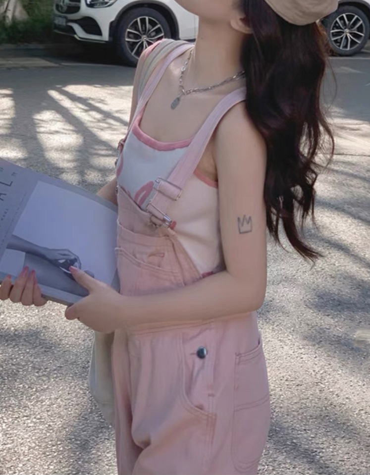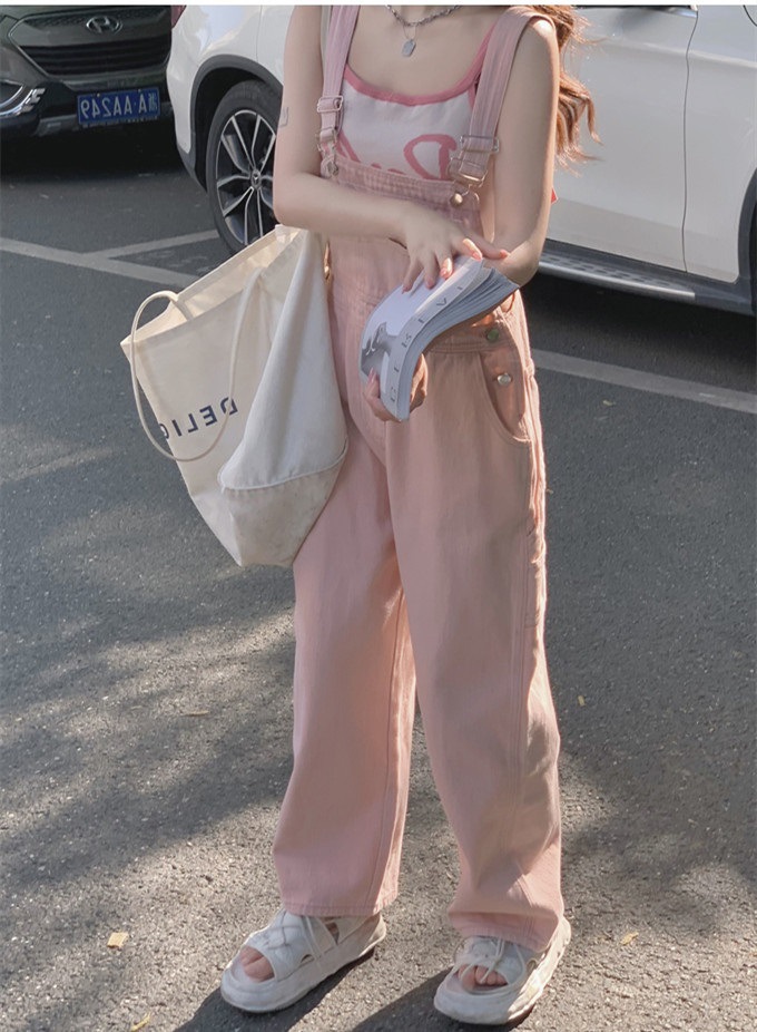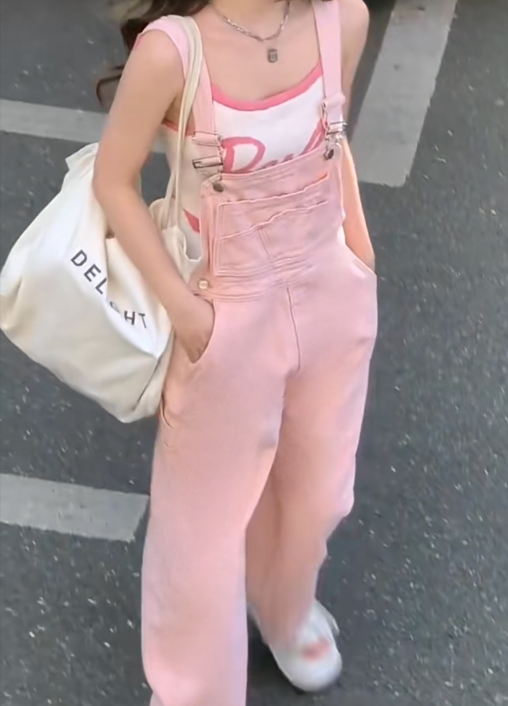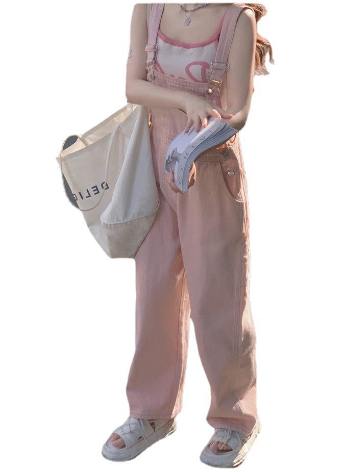 奶盐系粉色牛仔背带裤女春夏新款减龄显瘦小个子工装连体裤子