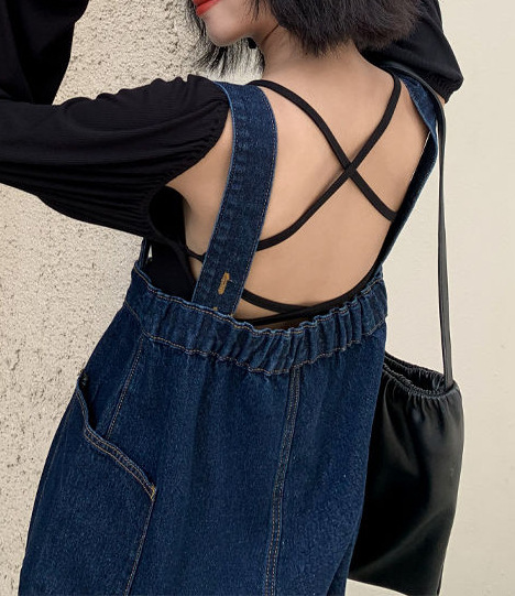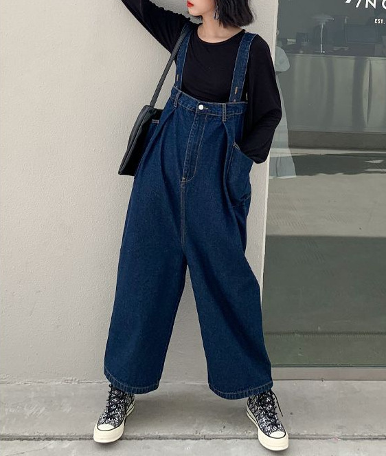 设计感牛仔背带裤女年春夏新款胖妹妹大码女装宽松韩版连体裤