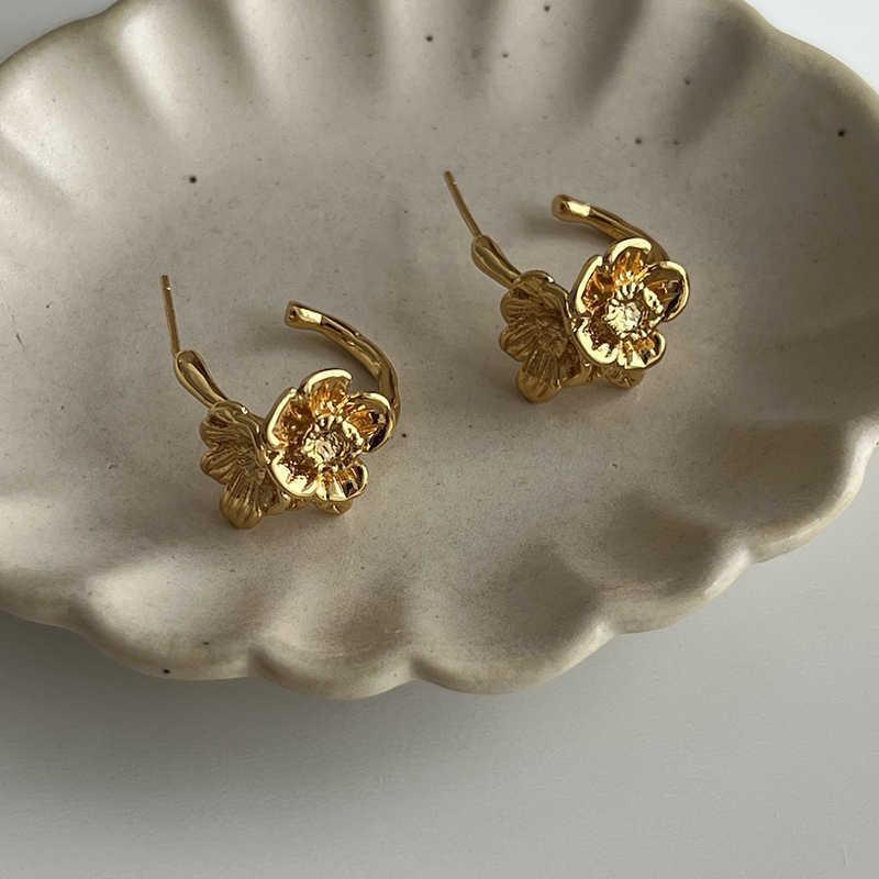 花团锦簇925银针早秋新款时尚复古法式超仙花朵造型网红耳圈耳环