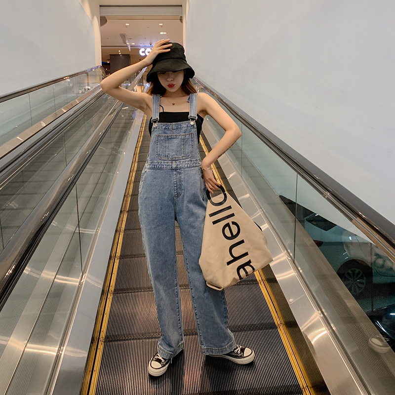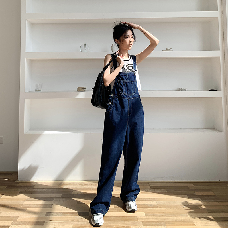 牛仔背带裤女春夏新款美式复古慵懒宽松阔腿坠感工装拖地长裤