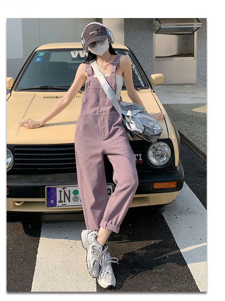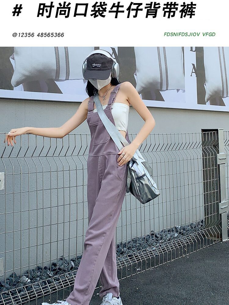 潮牌牛仔背带裤女春夏新款梨型身材宽松显瘦减龄哈伦连体裤