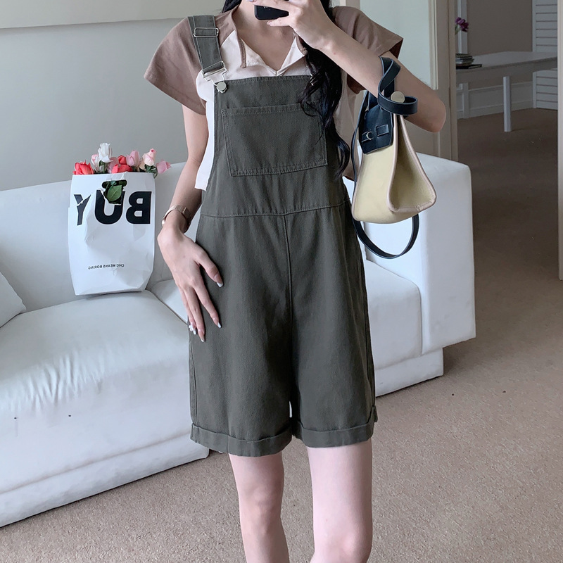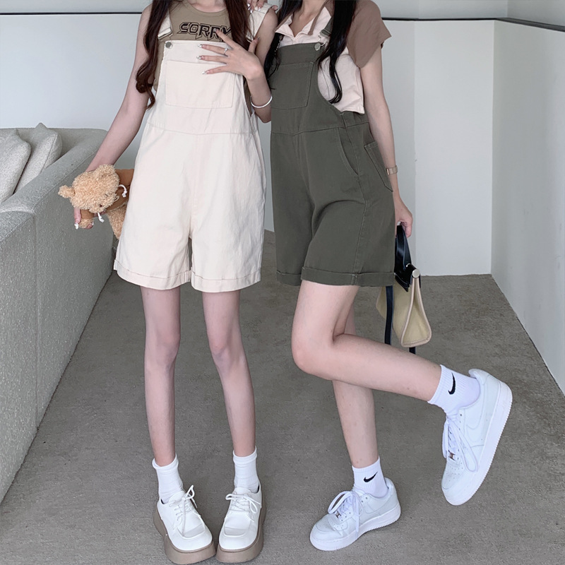 牛仔背带裤女夏季薄款年新款大码洋气减龄宽松显瘦阔腿短裤子