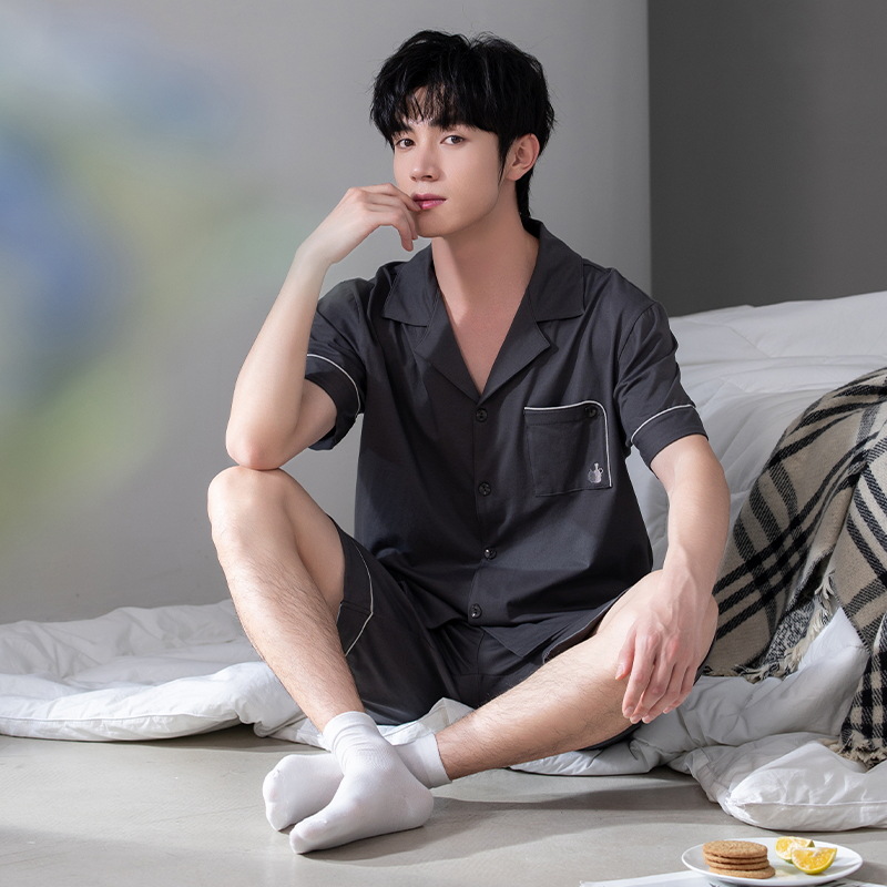 纯棉睡衣男士夏季短袖短裤开衫青少年家居服春夏天薄款加大码套装