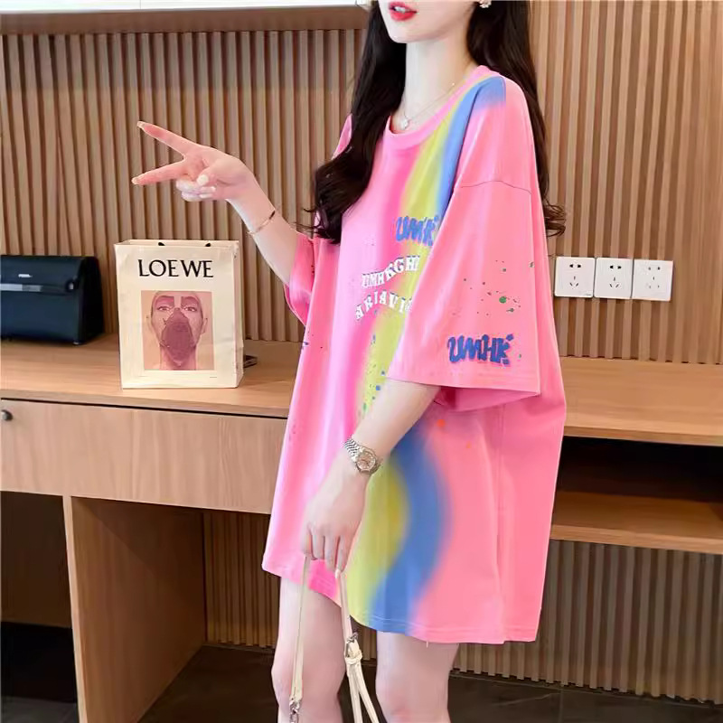 韩版设计感宽松慵懒风T恤女2025新款夏季超好看洋气减龄中长款T恤