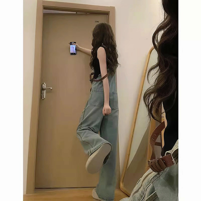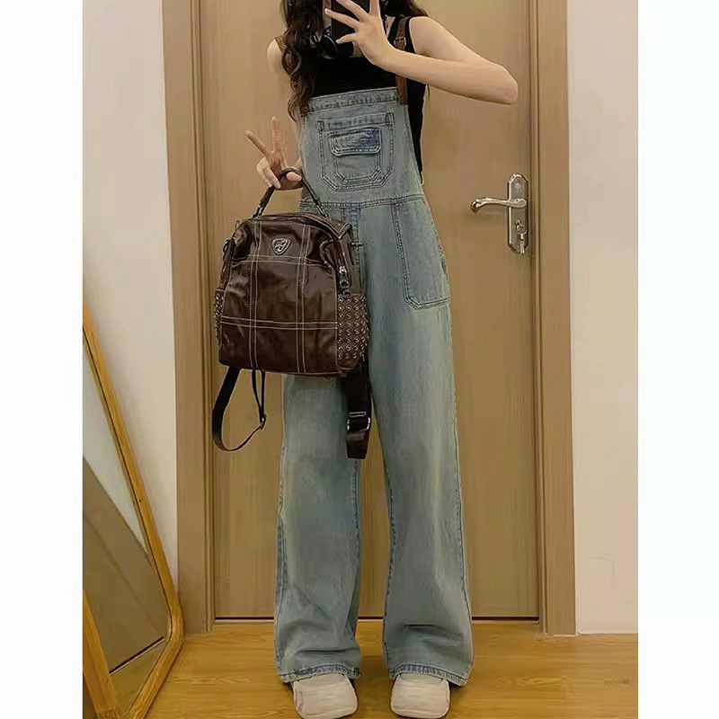 小个子背带裤女春秋新款美式连体裤直筒显瘦牛仔背带裤子夏季