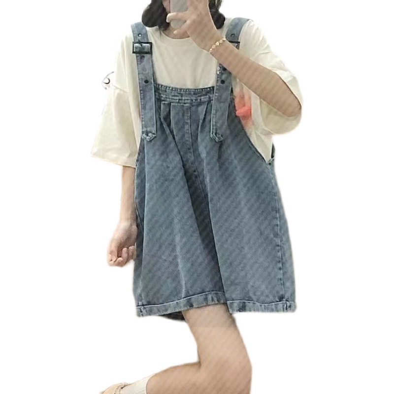 奶盐系小个子甜美小清新背带牛仔裤女减龄夏季新款高腰宽松潮流裤