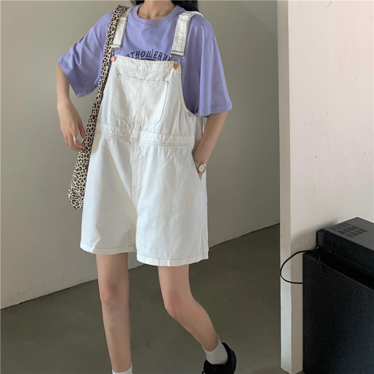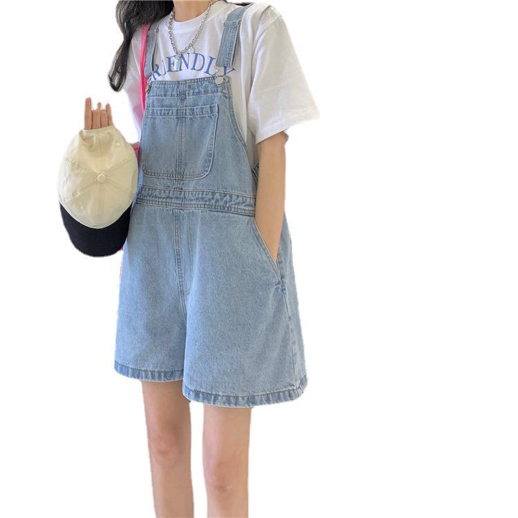 高腰薄款牛仔背带短裤女年新款夏季宽松减龄韩版吊带连体裤潮