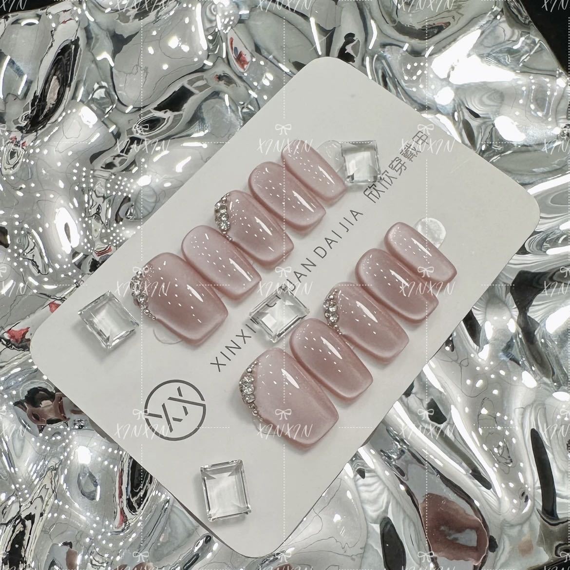 纯手工光疗穿戴甲甜蜜约定批发成品重复使用美甲贴片可拆卸猫
