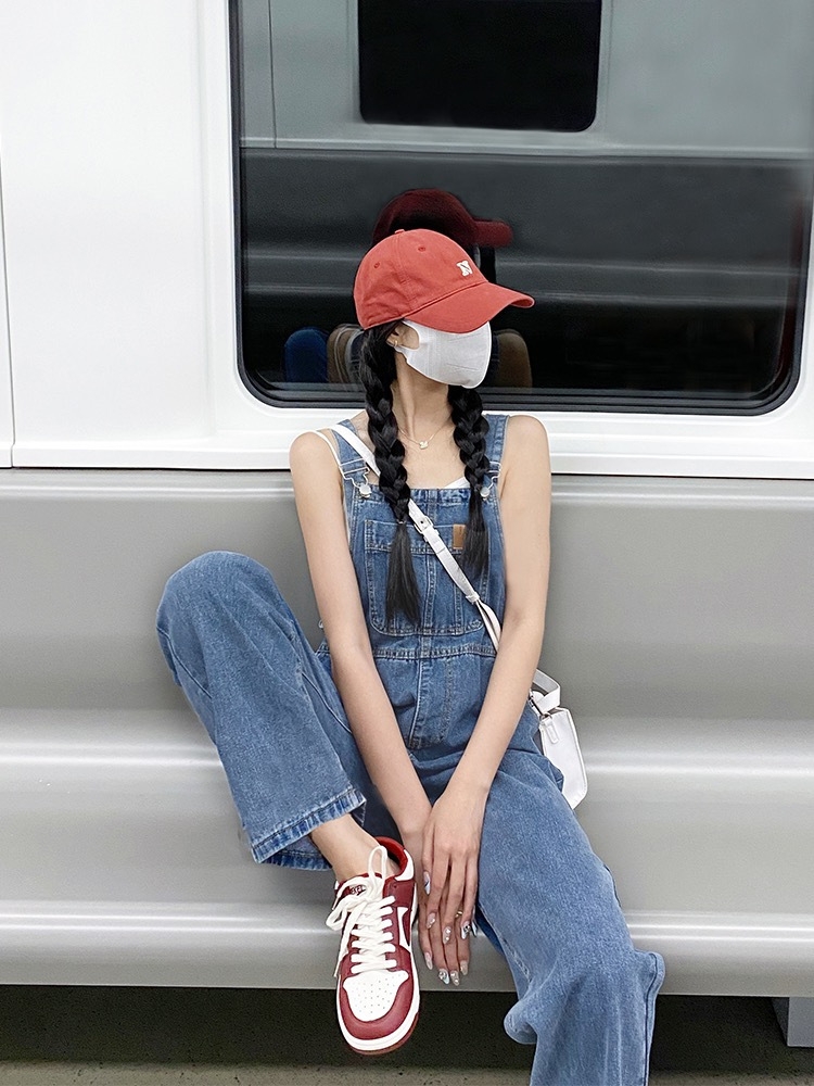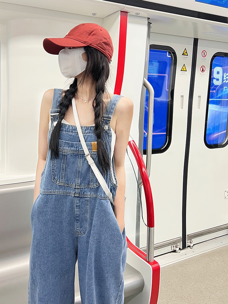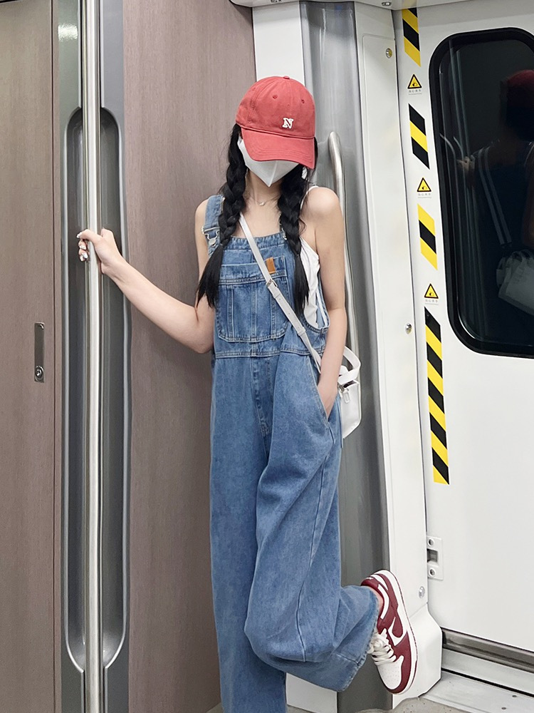 奶盐系小个子甜美小清新背带牛仔裤女减龄夏季新款高腰宽松潮流裤