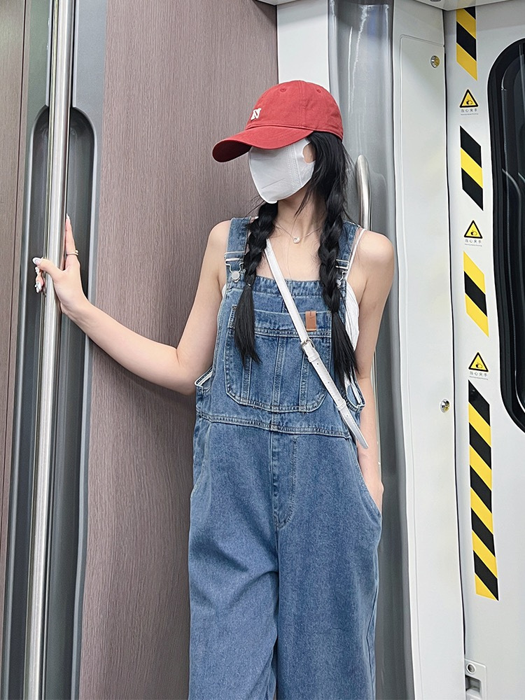 牛仔背带裤女春夏薄款新款小个子连体裤设计感小众宽松阔腿裤