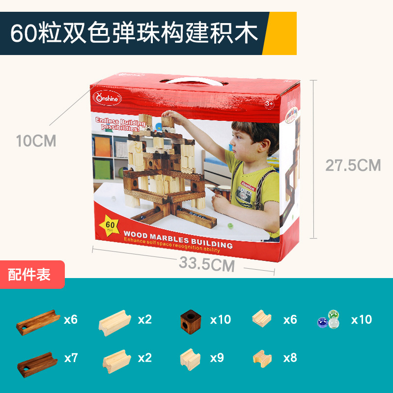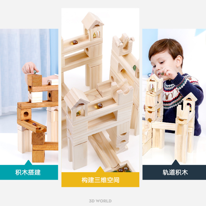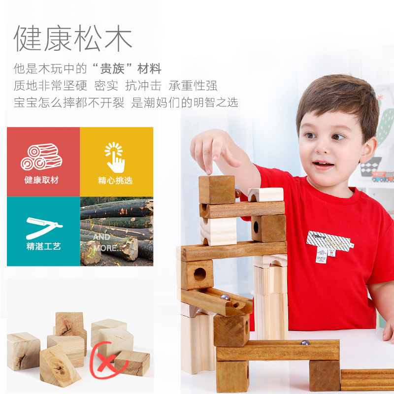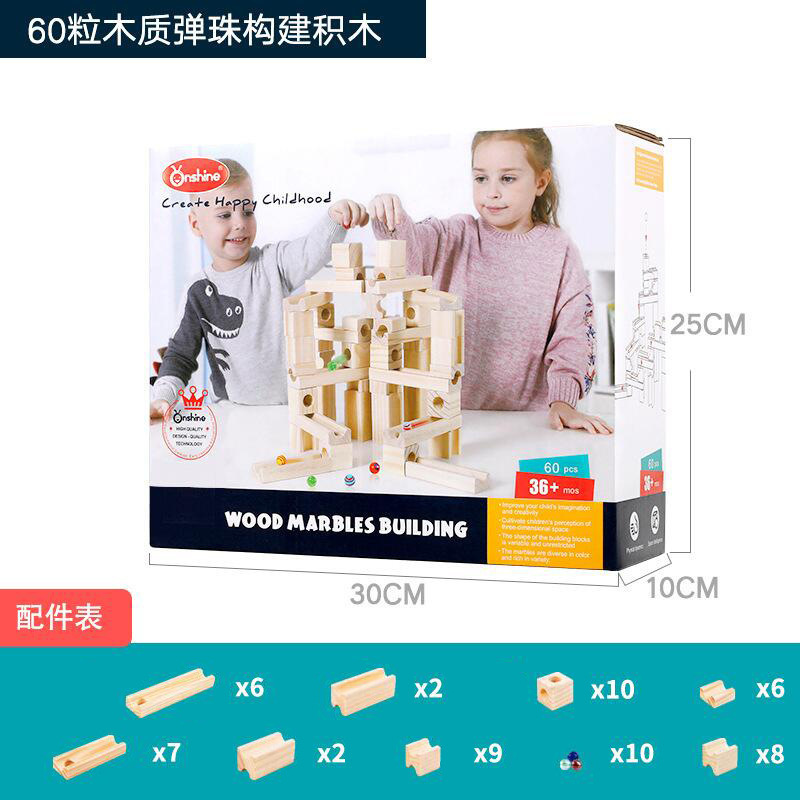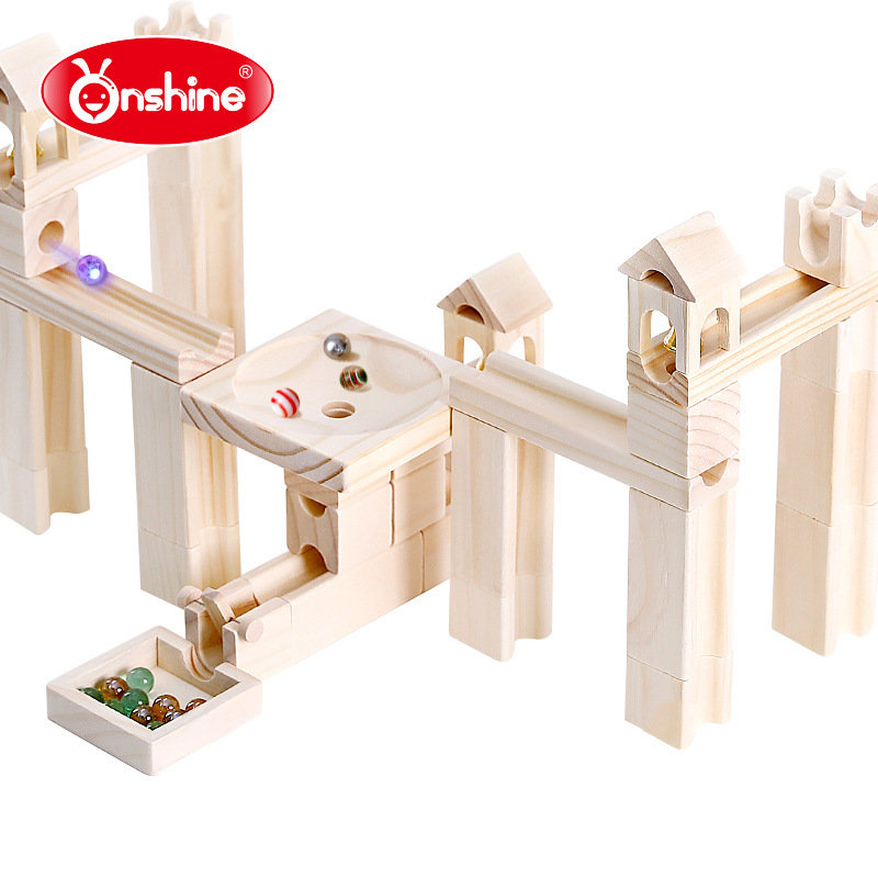 Onshine80粒木质弹珠积木儿童益智diy拼搭轨道玩具管道滚珠球