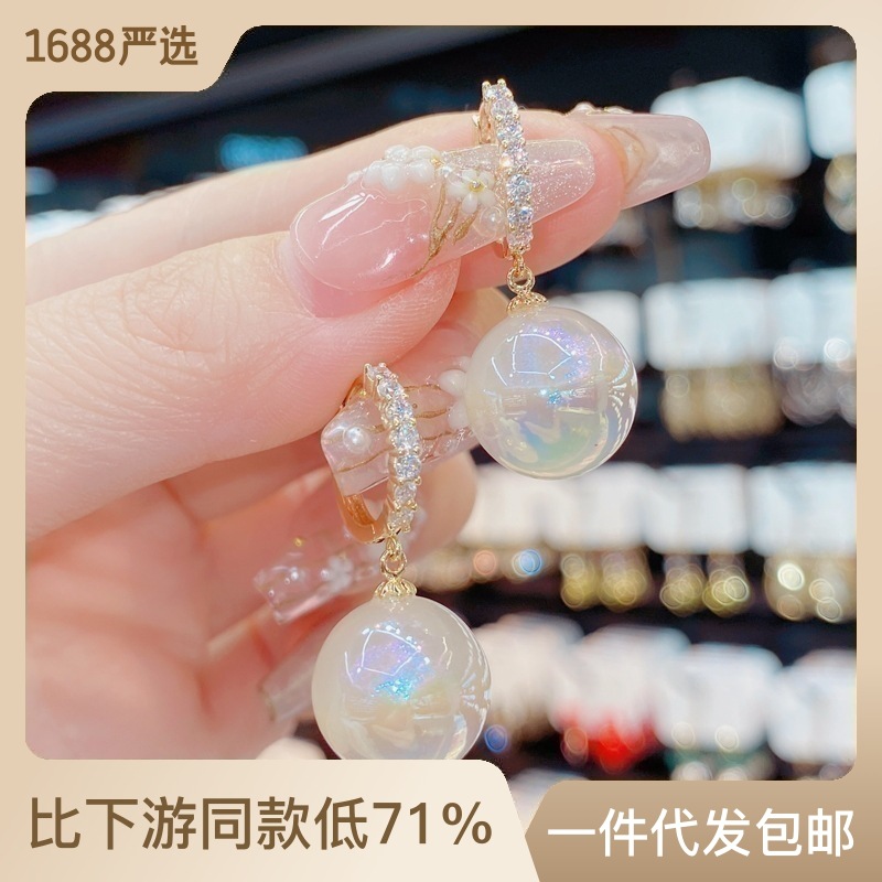 日韩时尚微镶锆石耳扣炫彩人鱼姬耳坠气质轻奢设计感百搭耳环耳饰