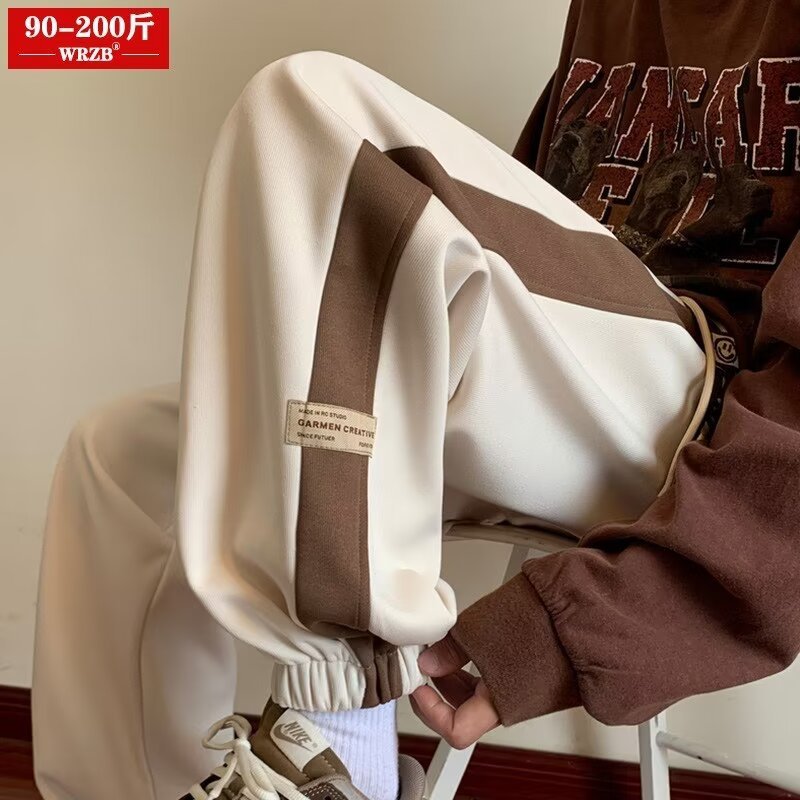 裤子男秋季新款拼接撞色束脚运动卫裤美式复古重磅百搭宽松休闲裤