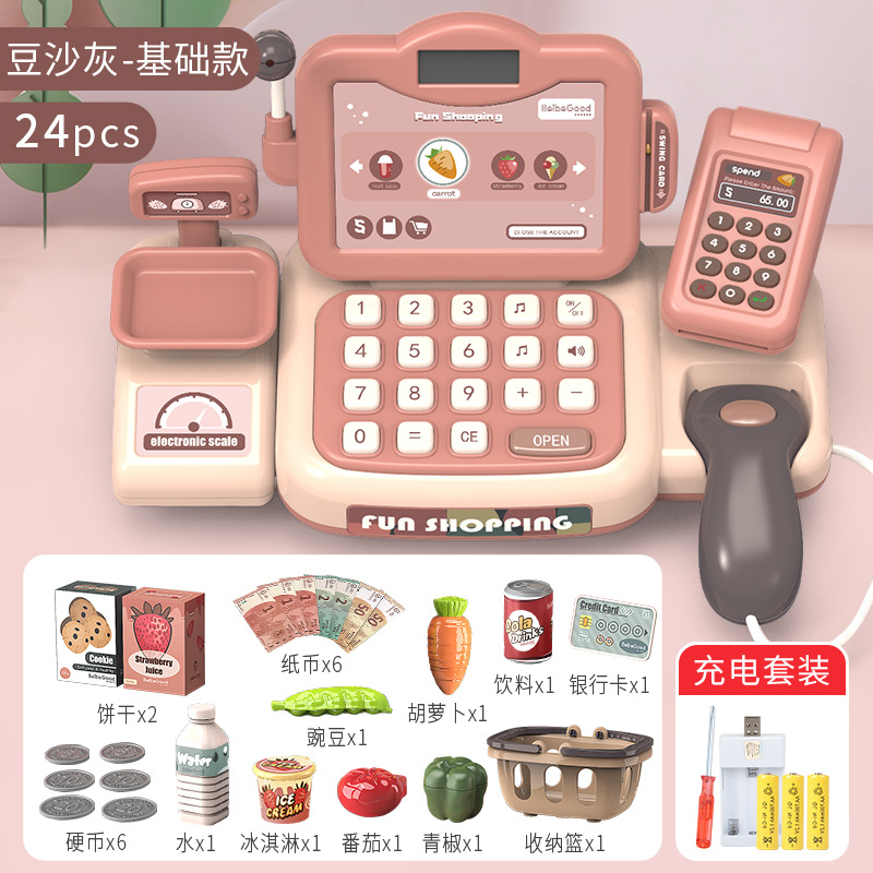 【充电】基础款-智能识别收银机24件套(豆沙灰)