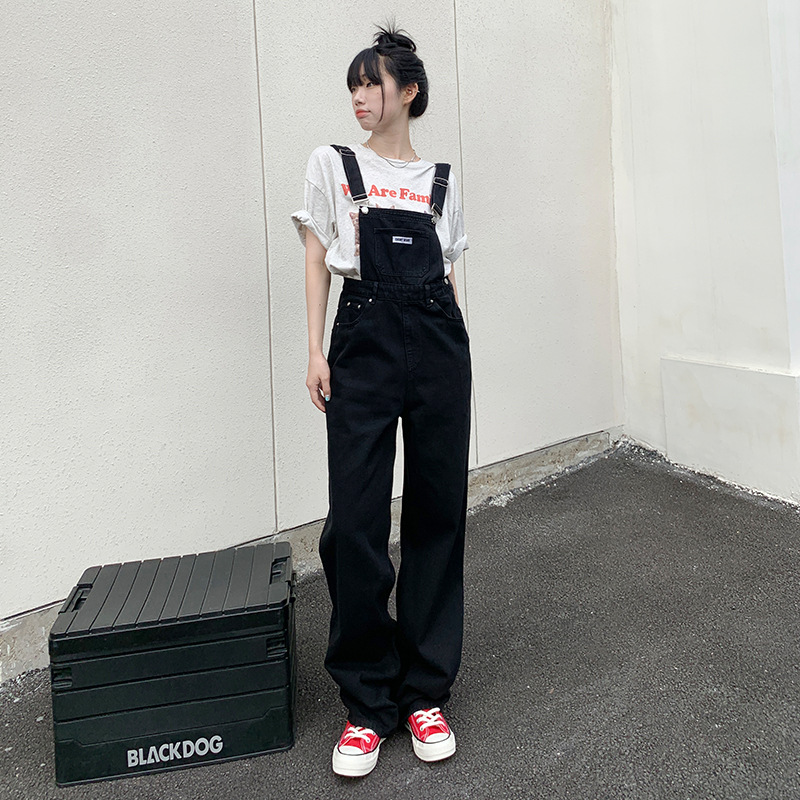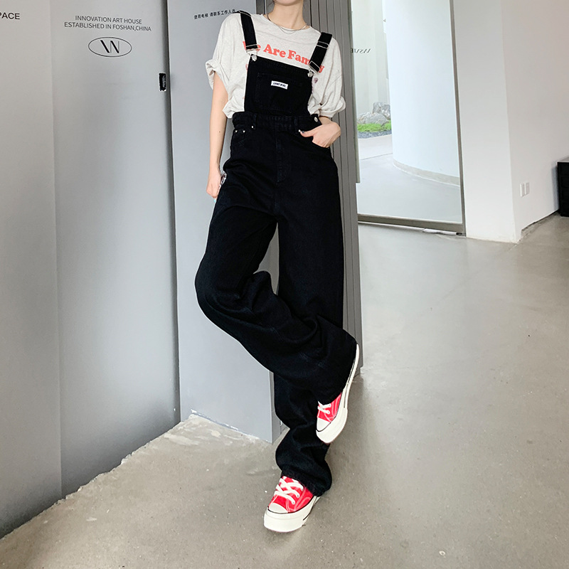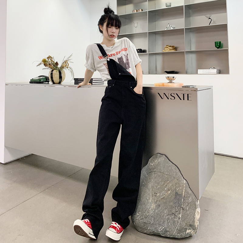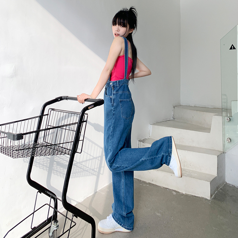 春夏新款牛仔背带裤女高腰宽松显瘦阔腿设计感减龄百搭背带裤