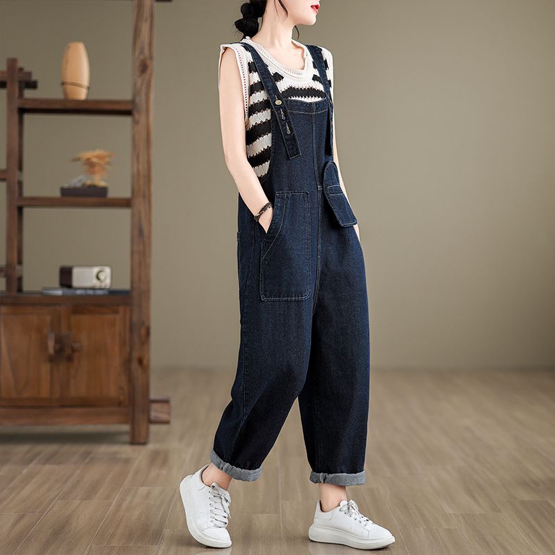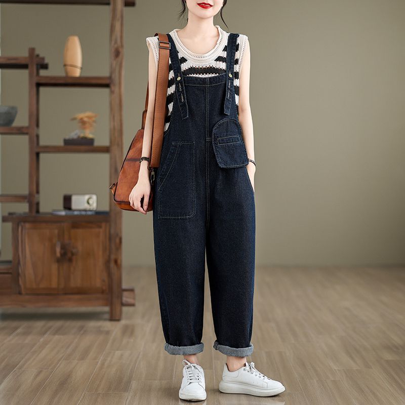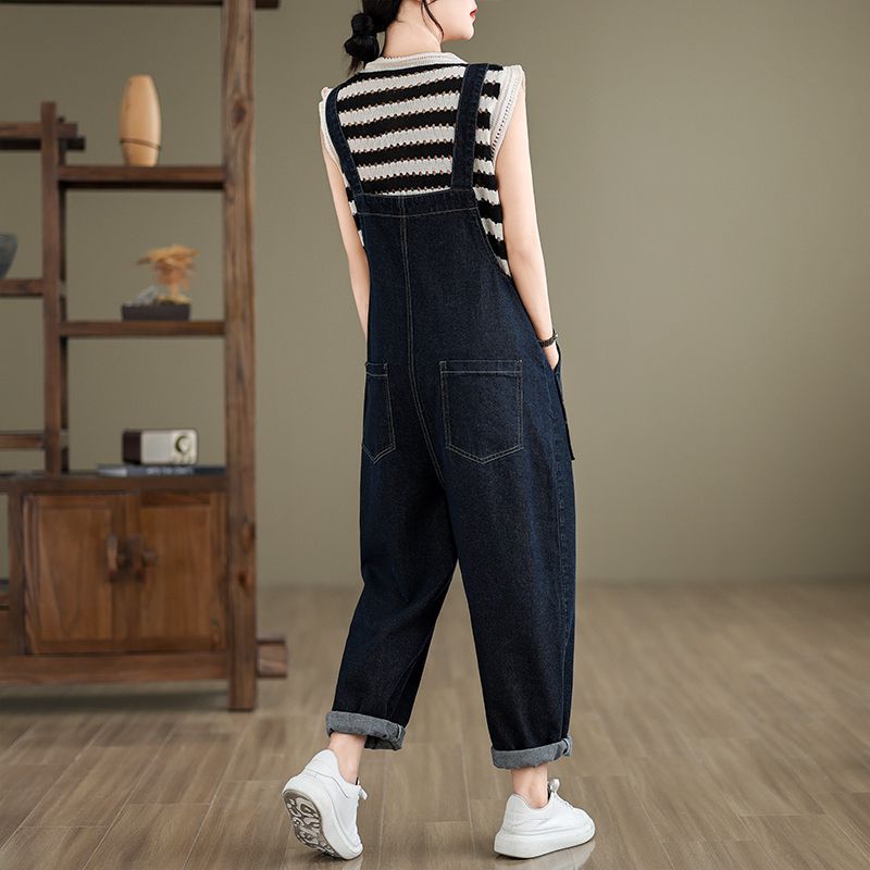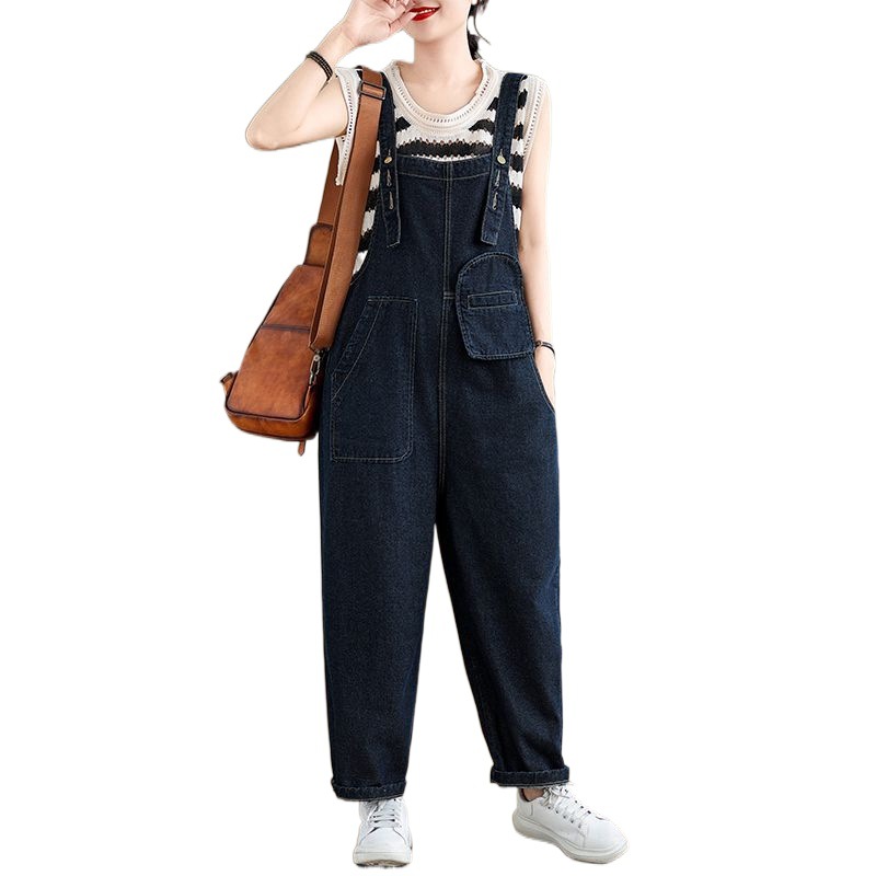 实拍限价春夏新款大码百搭宽松牛仔背带裤九分裤女