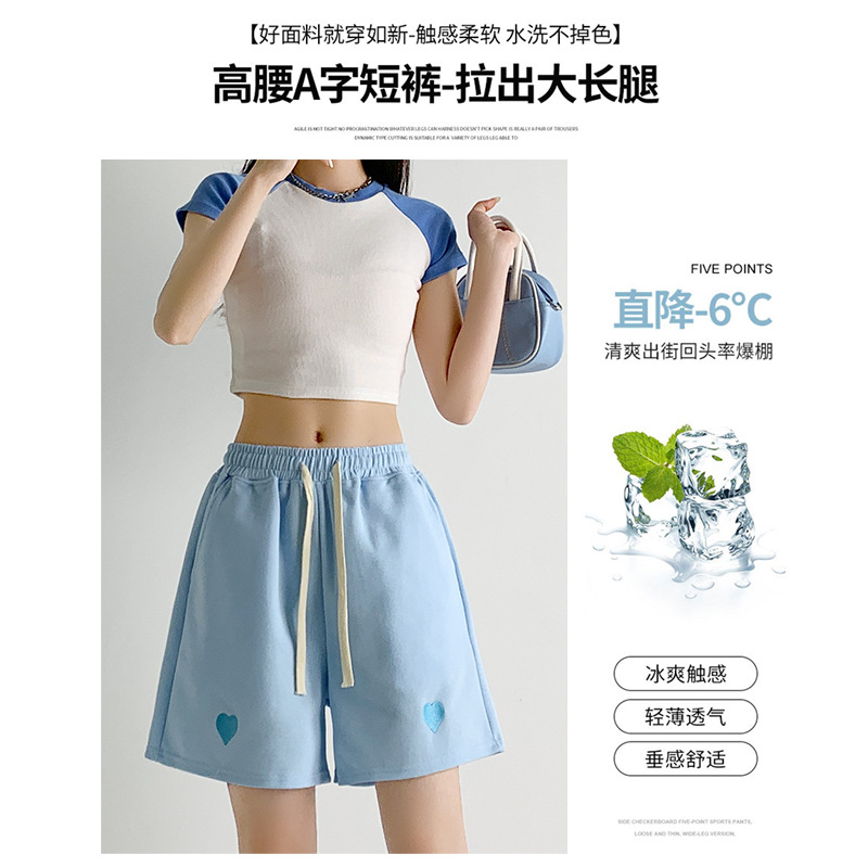 运动短裤女夏季薄款宽松显瘦高腰阔腿裤垂坠感外穿休闲裤五分裤子
