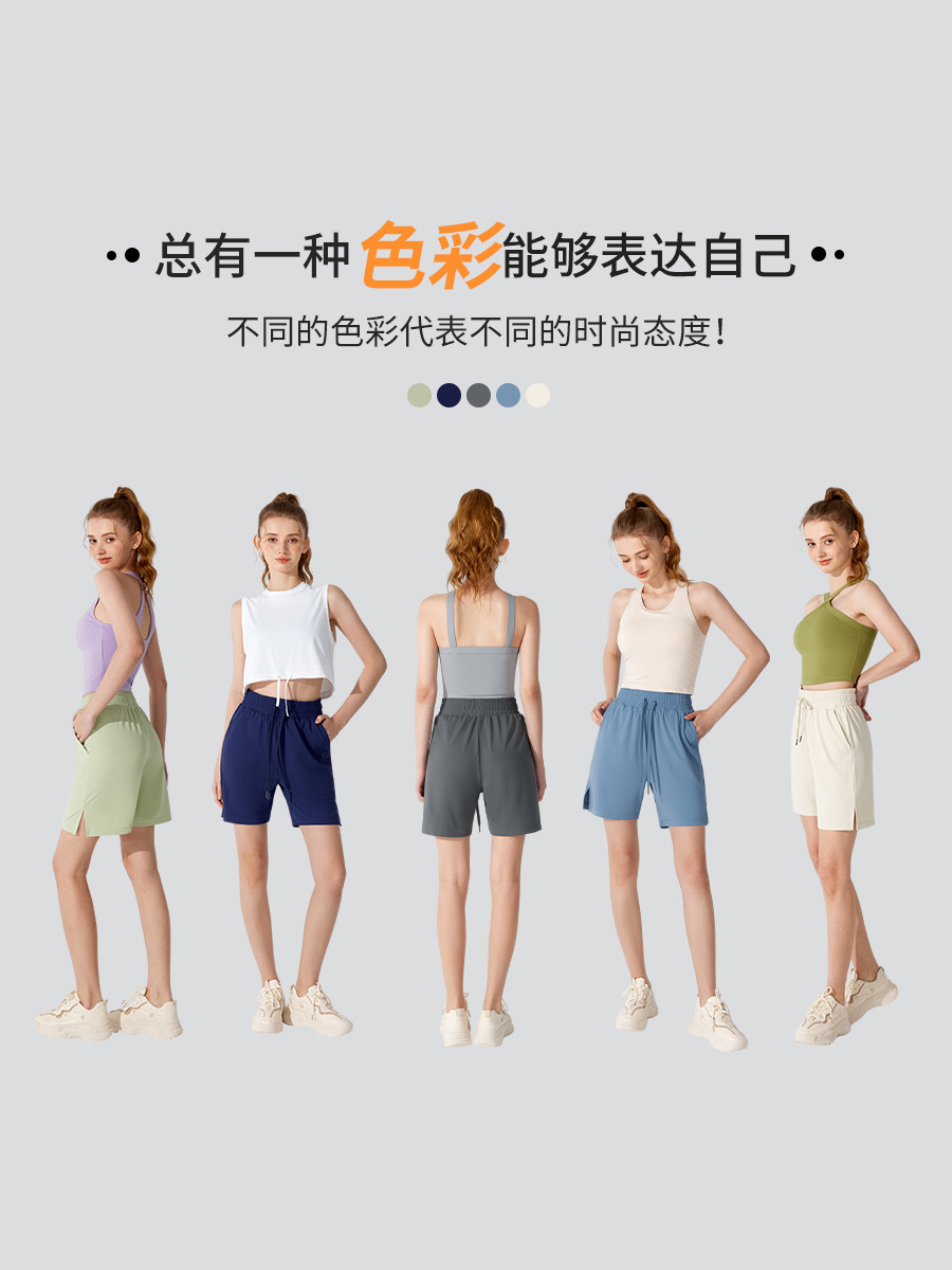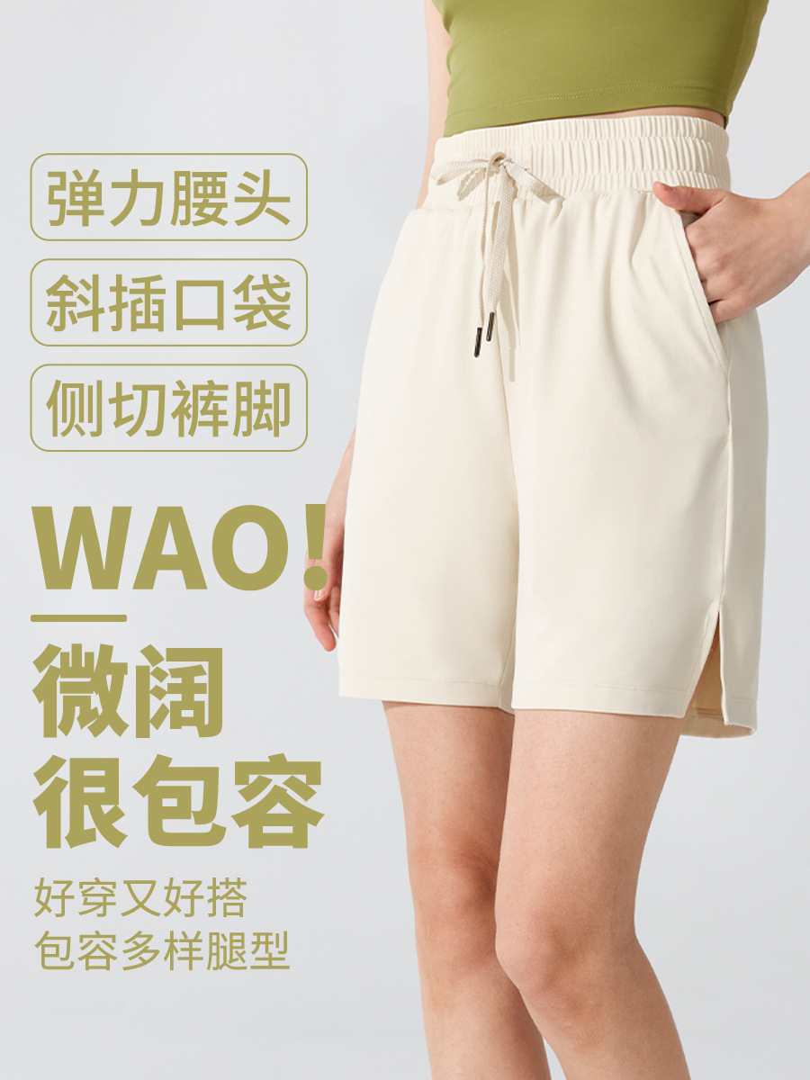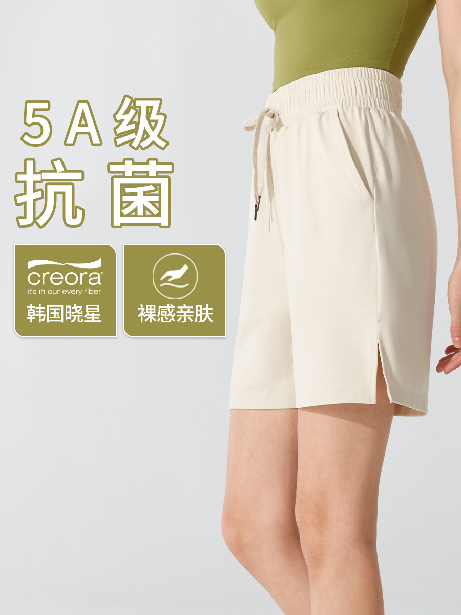 5A级抗菌运动短裤女夏季薄款绿色宽松显瘦中裤休闲裤阔腿五分热裤