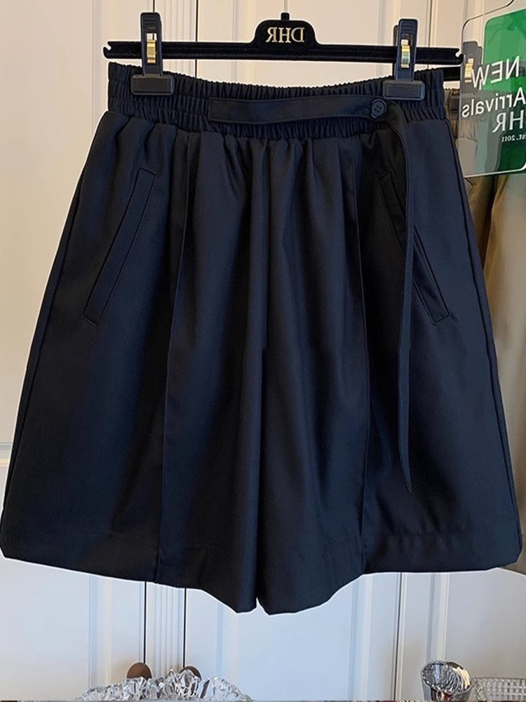 大码运动短裤女夏天薄款宽松休闲裤胖mm高腰显瘦阔腿西装五分裤子