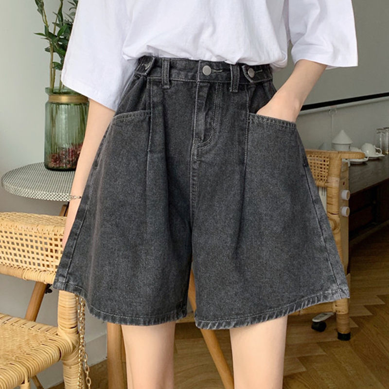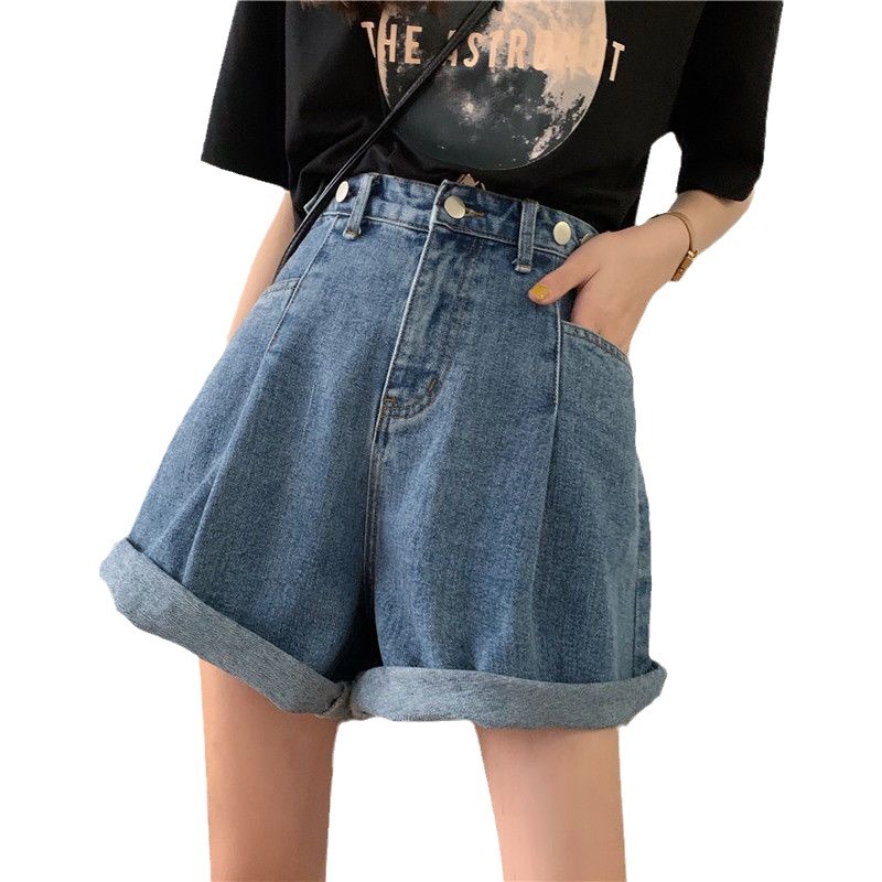 短裤女新款夏天薄款高腰直筒阔腿裤宽松牛仔热裤卷边五分裤子