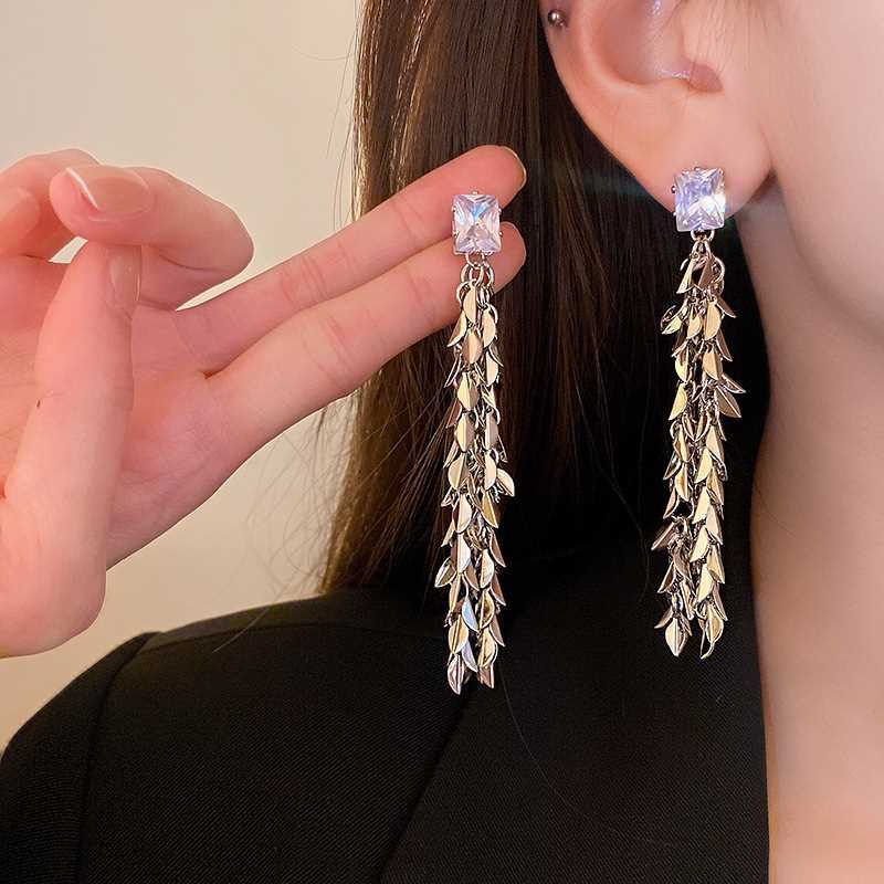 轻奢精致方钻流苏麦穗长款耳钉女时尚气质小众设计高级感洋气耳环