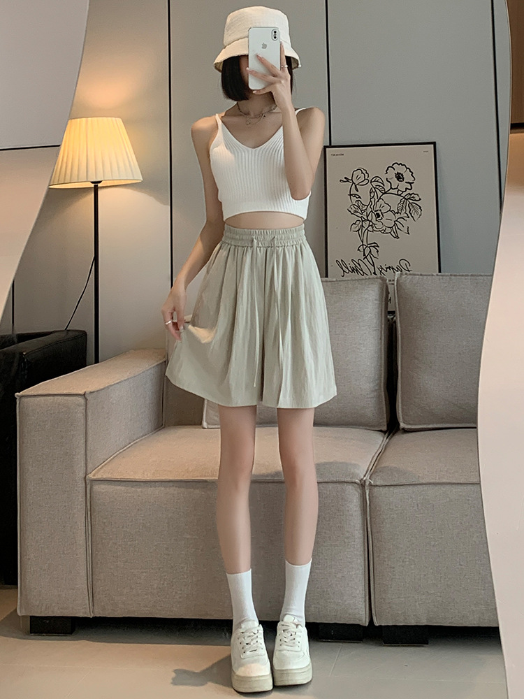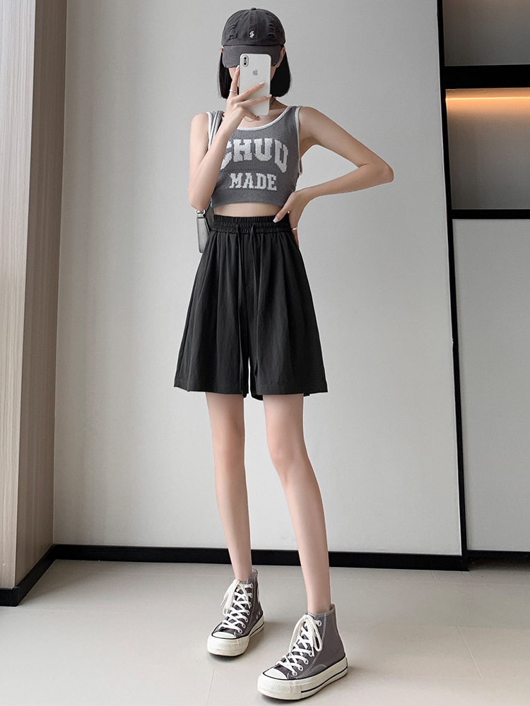 冰丝五分裤女夏天薄款外穿小个子松紧腰显瘦宽松休闲阔腿运动短裤