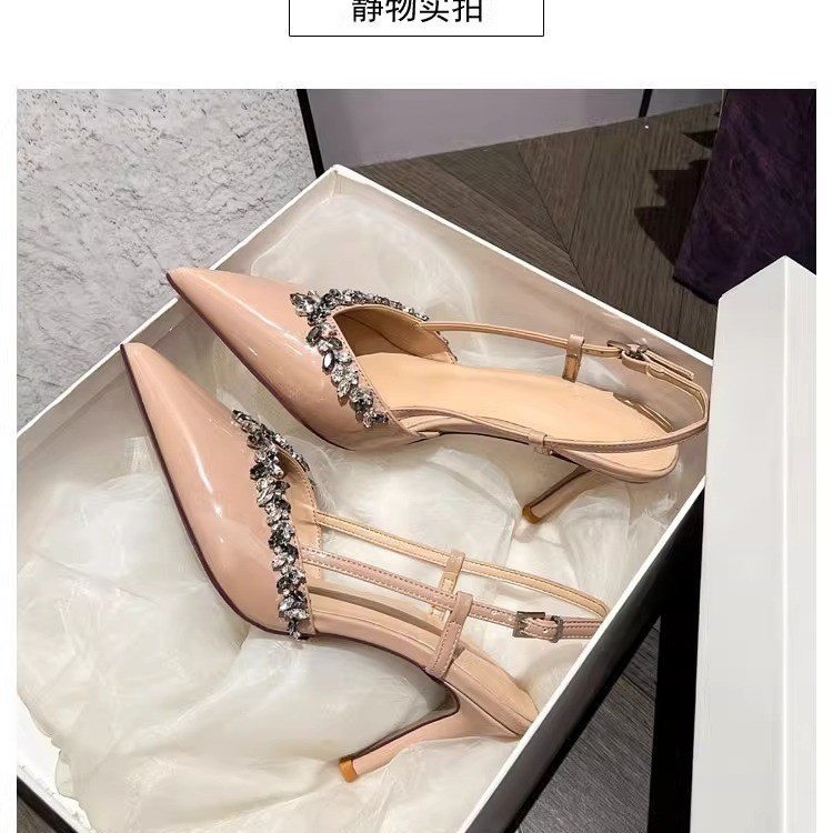 2025新款高级感满钻宴会鞋高跟鞋女细跟尖头法式一字带显瘦单鞋
