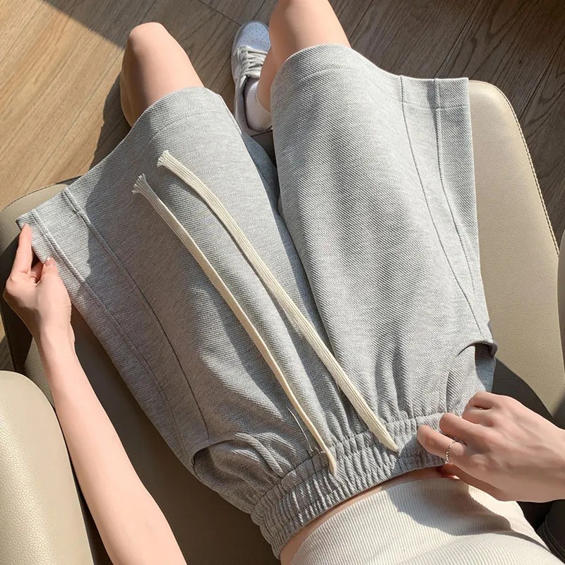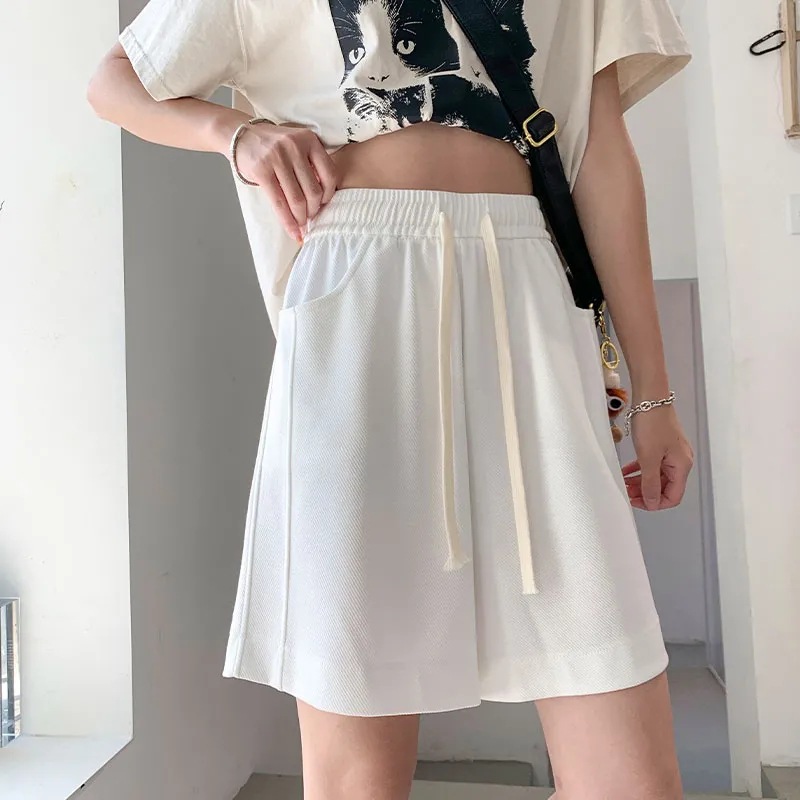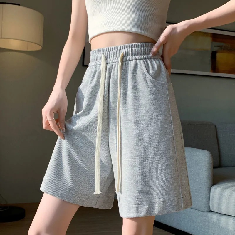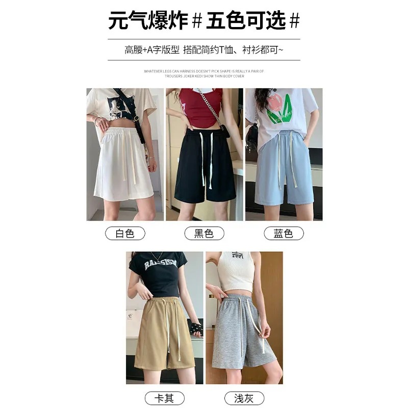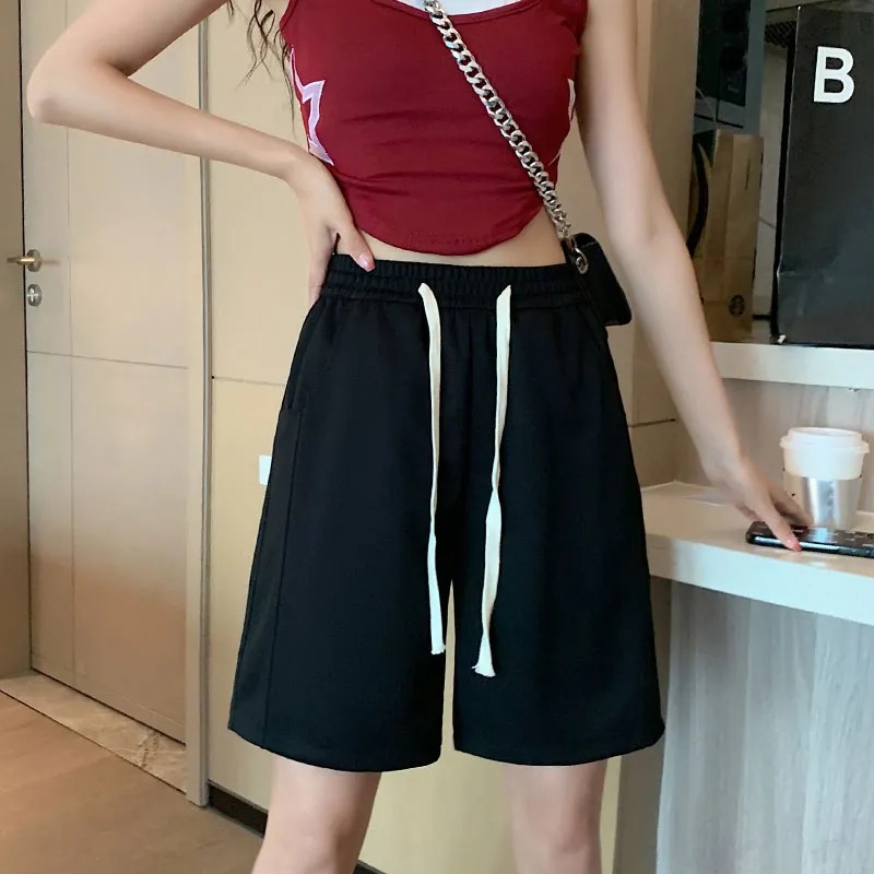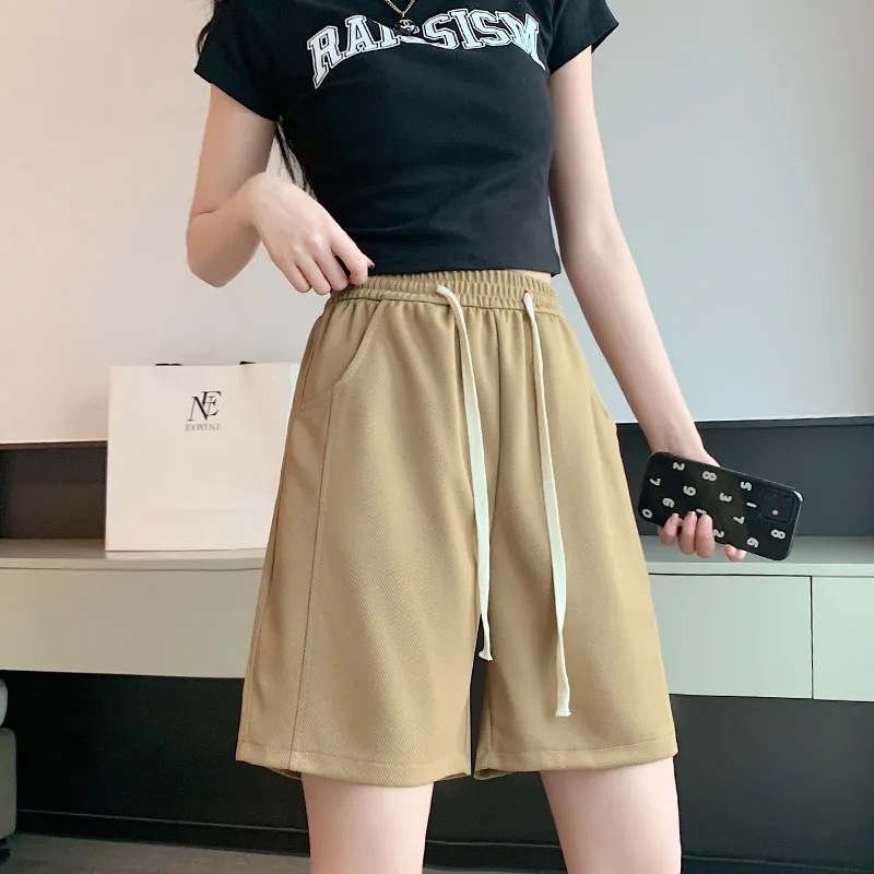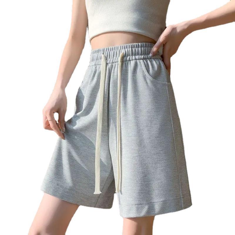 美式运动短裤女夏季薄款宽松直筒高腰夏天休闲百搭阔腿五分中裤子