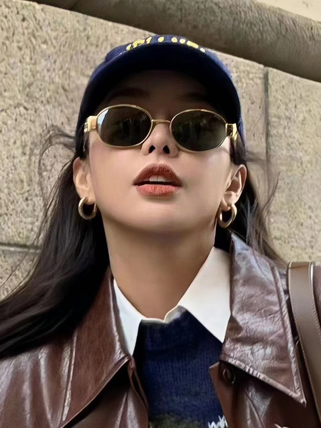 复古美式金属小框圆脸墨镜女高级感椭圆形防晒街拍凹造型太阳眼镜