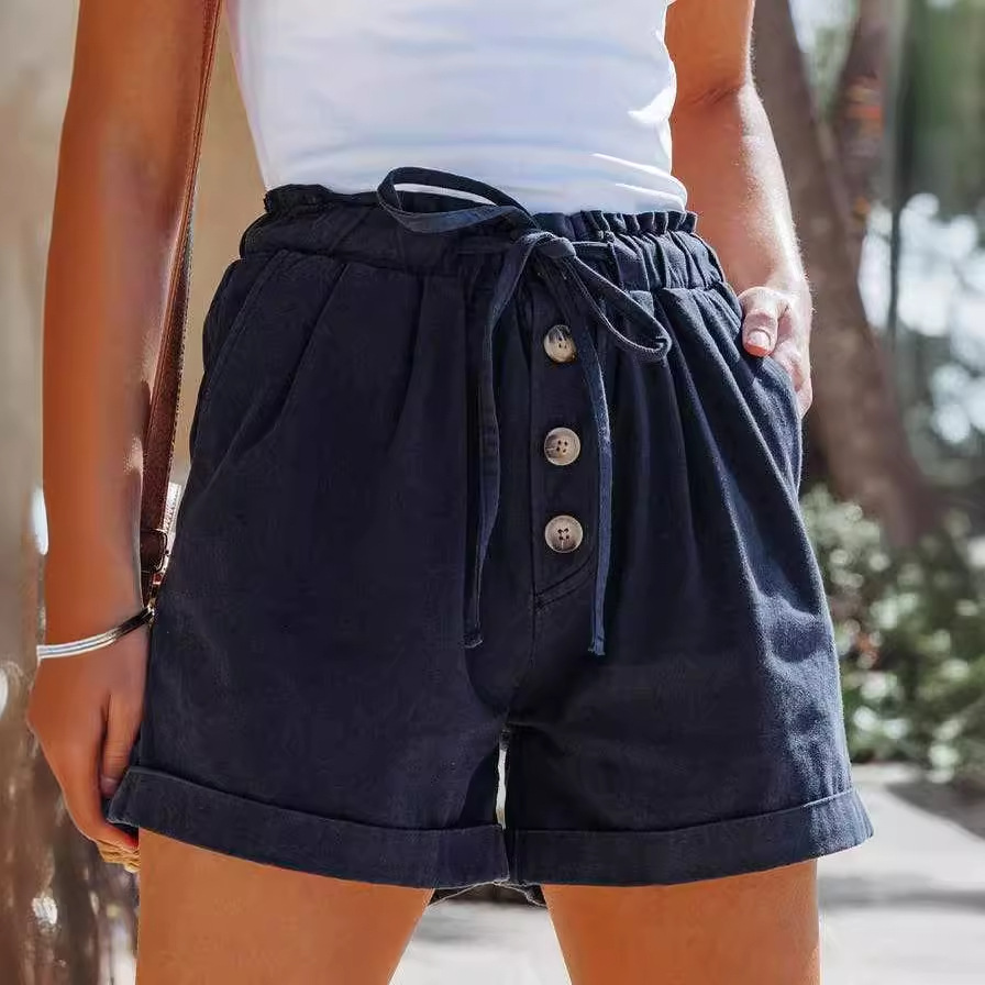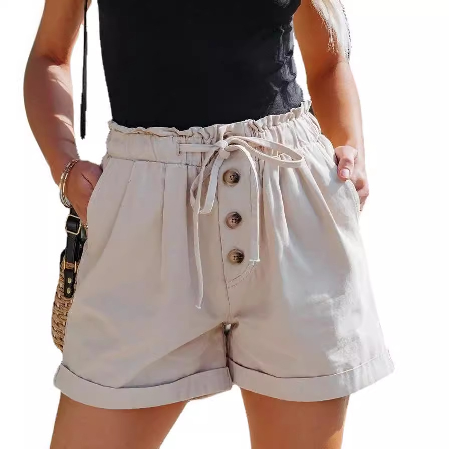 跨境独立站亚马逊夏季女装棉阔腿裤高腰松紧绑带休闲短裤