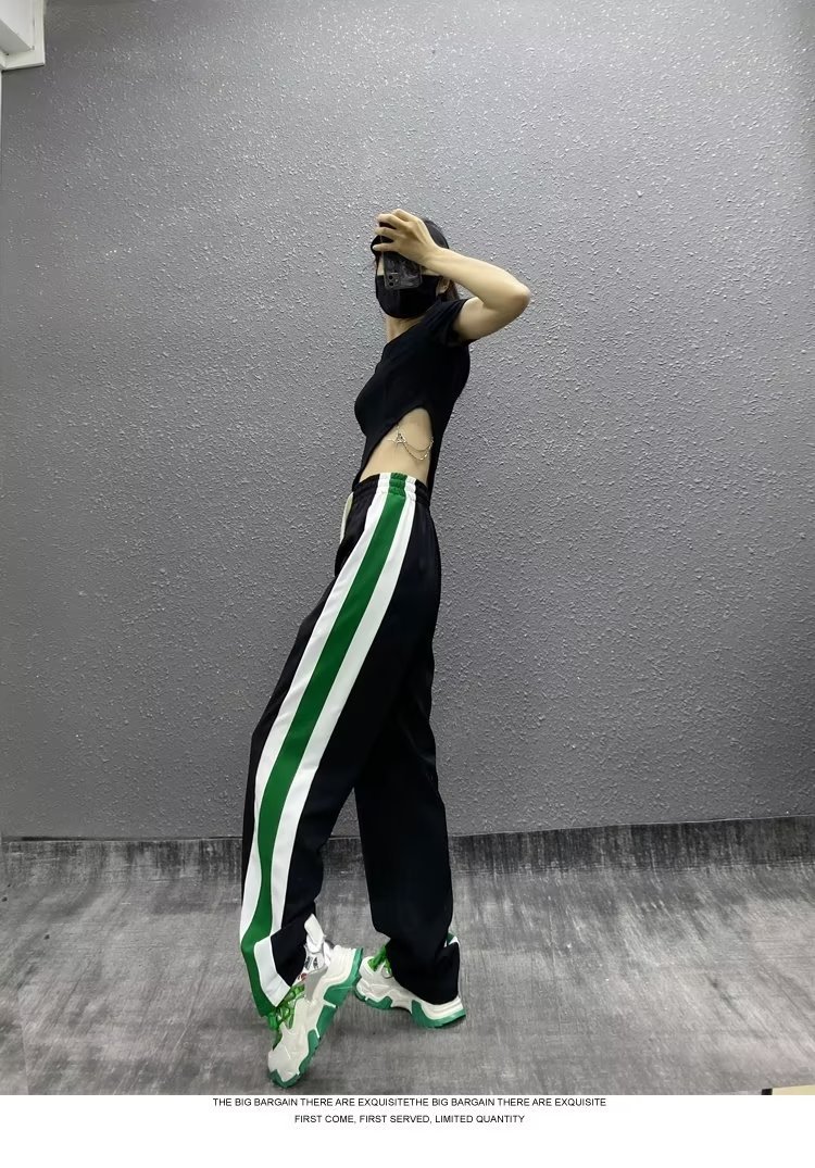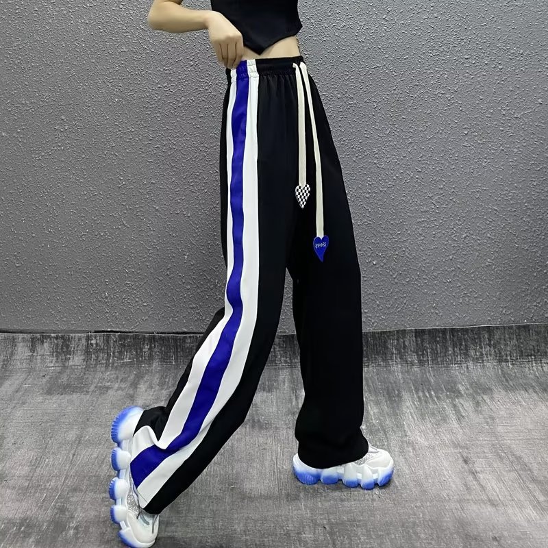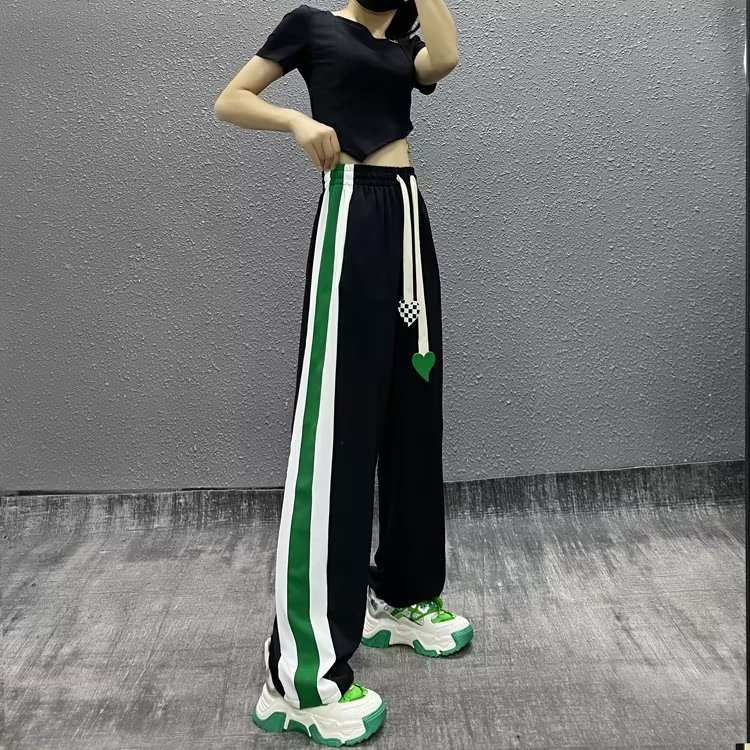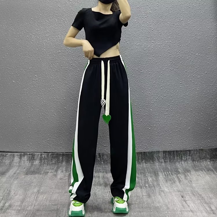 条纹休闲裤女 夏季薄款高腰宽松显瘦垂感直筒长裤阔腿裤子ins
