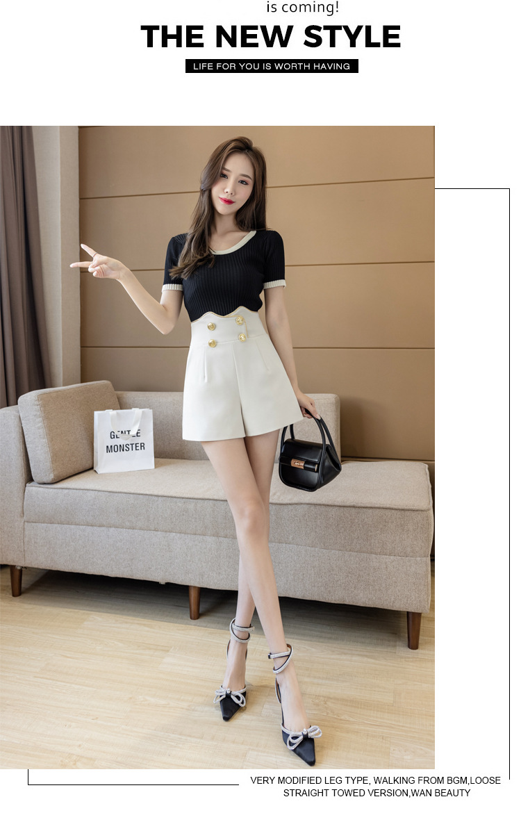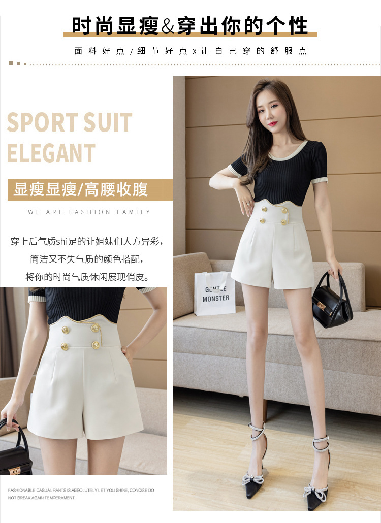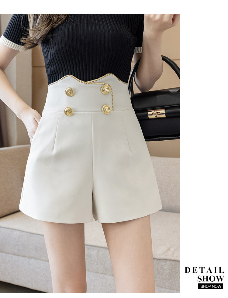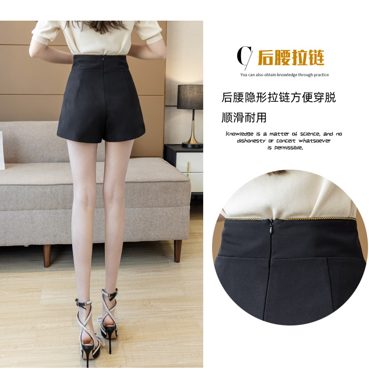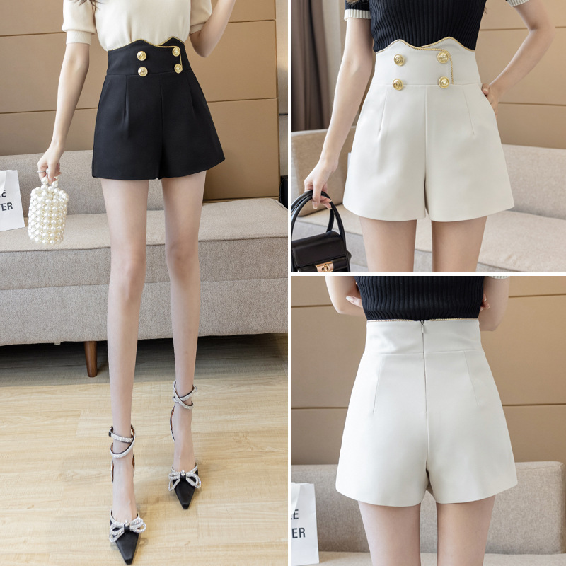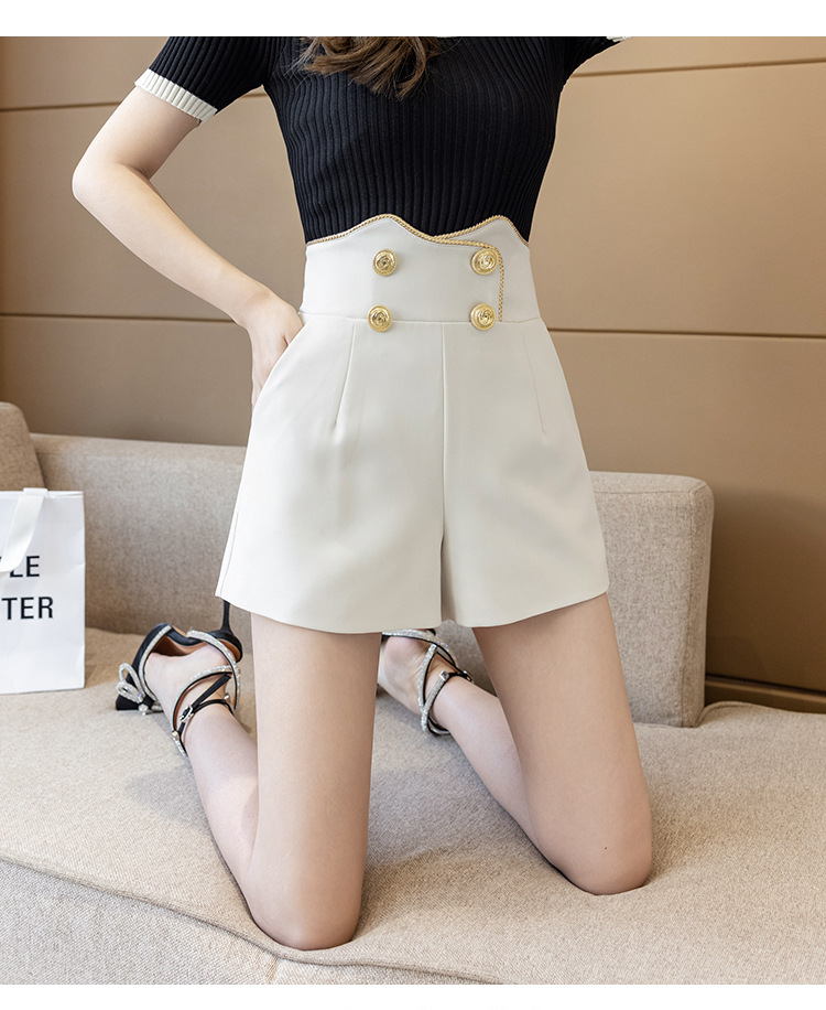 短裤女高腰排扣休闲西装阔腿裤秋季设计感气质a字热裤显瘦大长腿