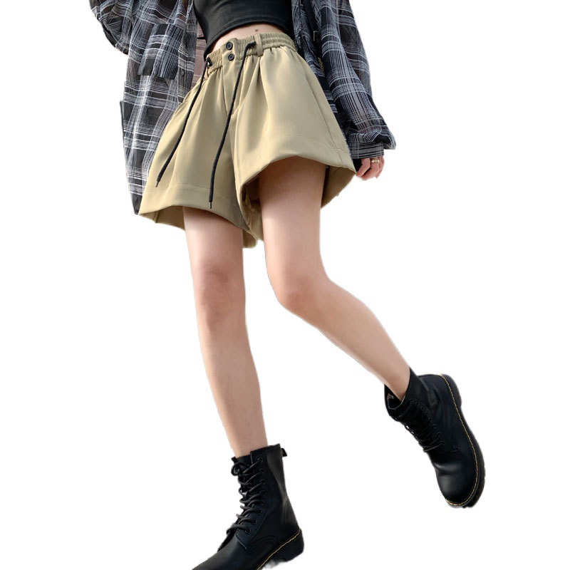 小个子抽绳高腰休闲短裤女夏装年新款百搭宽松显瘦阔腿热裤子