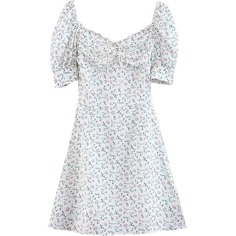 连衣裙女装夏季新款系带泡泡袖纯欲辣妹性感碎花少女包臀短裙