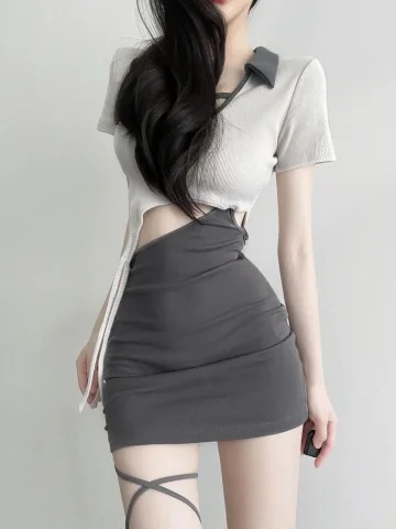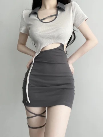 纯欲风气质高级设计感绑带连衣裙小众小心机别致辣妹包臀短裙子潮