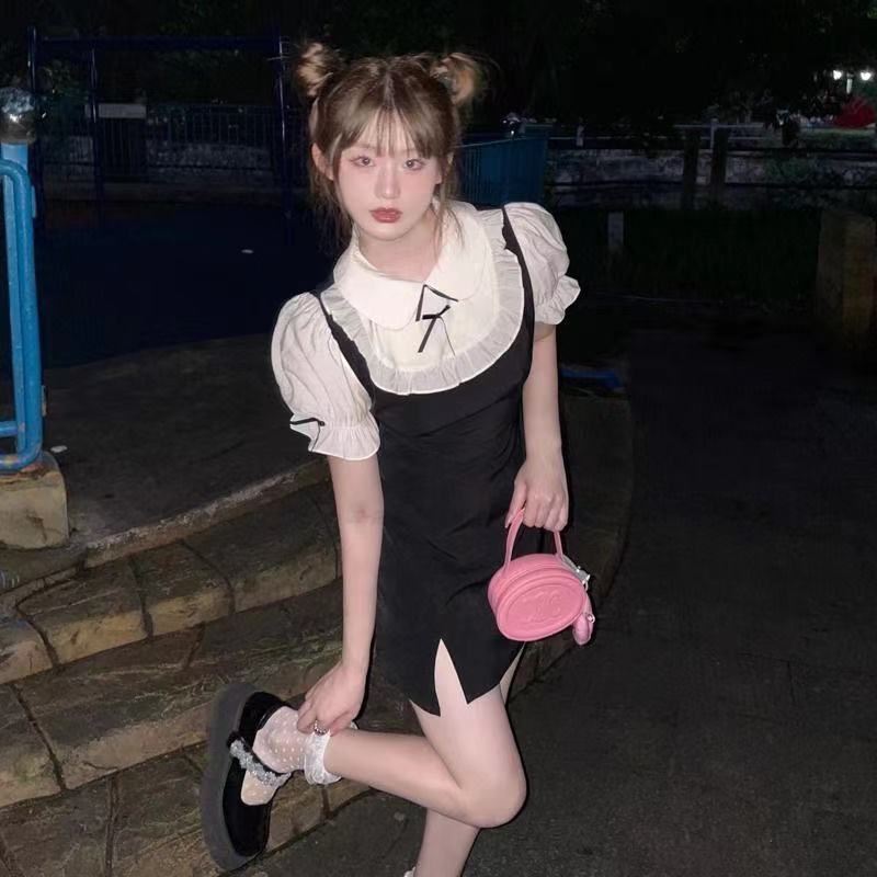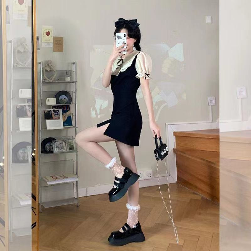 纯欲风假两件收腰显瘦连衣裙女夏季别致惊艳绝美性感包臀辣妹裙子