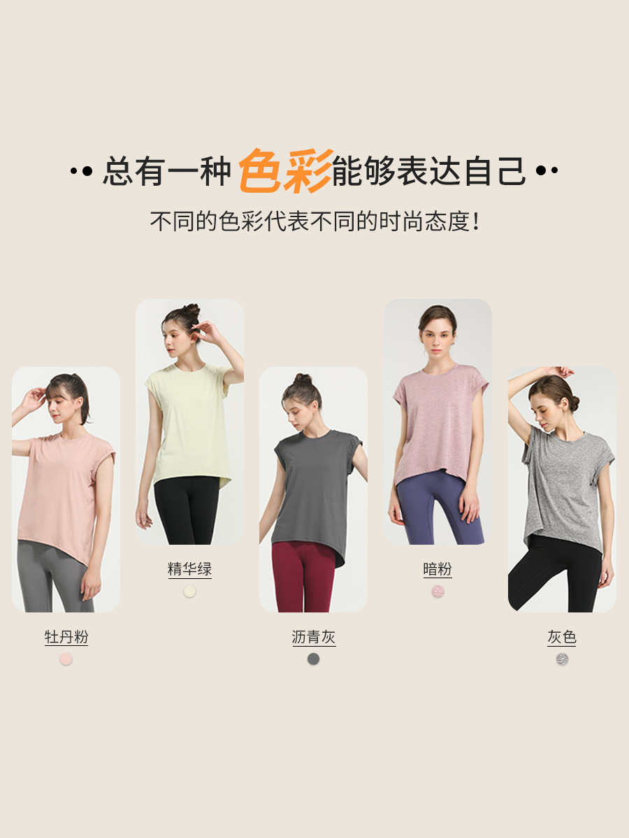跨境健身短袖T恤速干运动罩衫夏季瑜伽服瑜伽上衣跑步健身服女