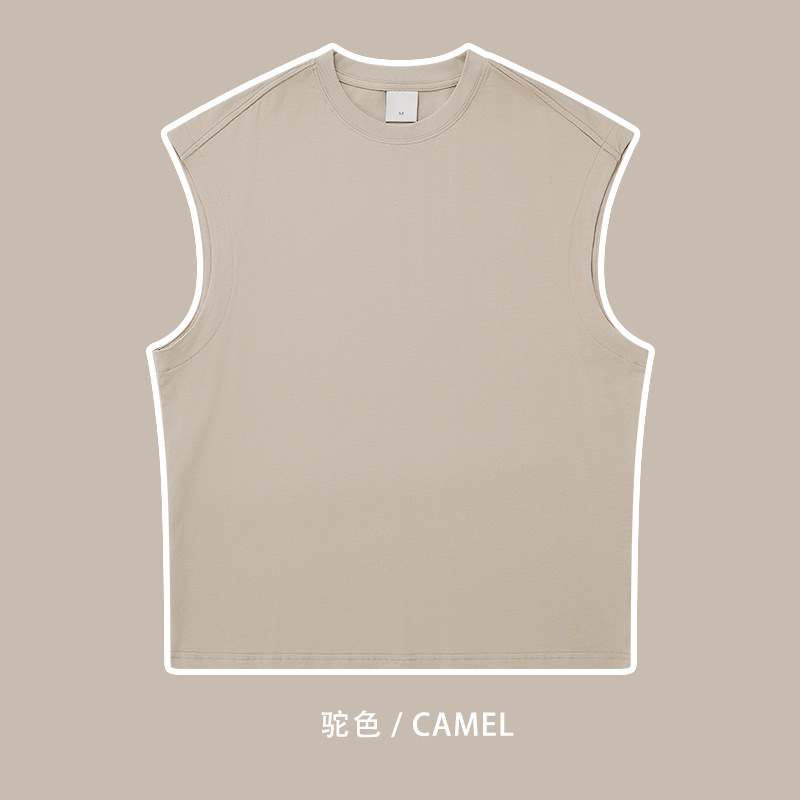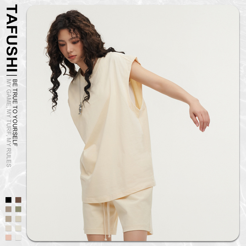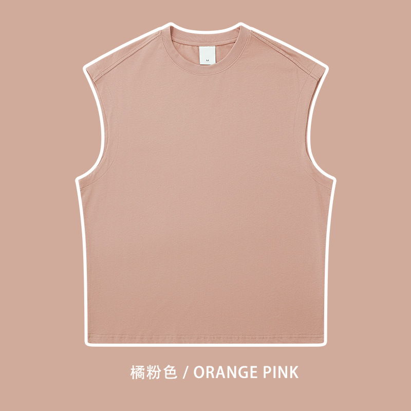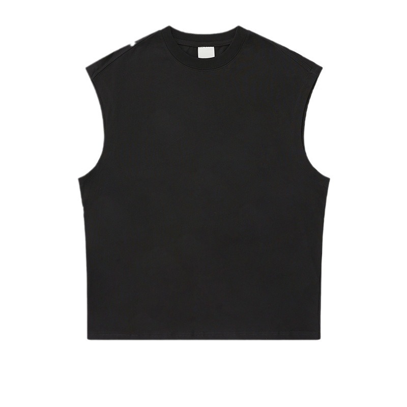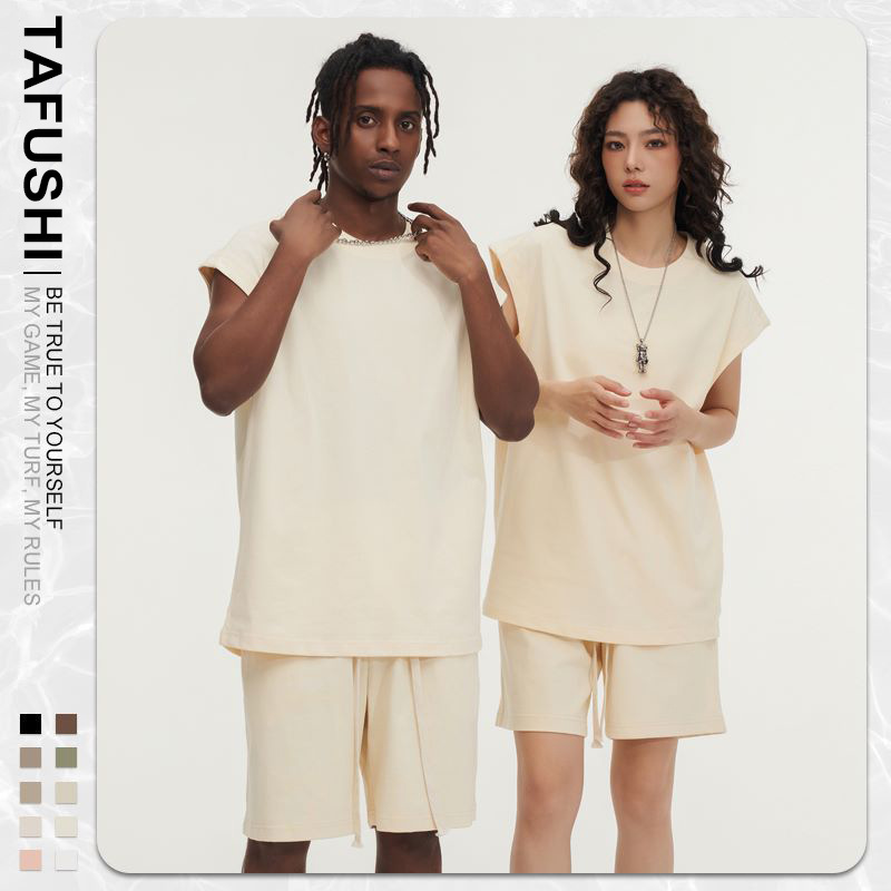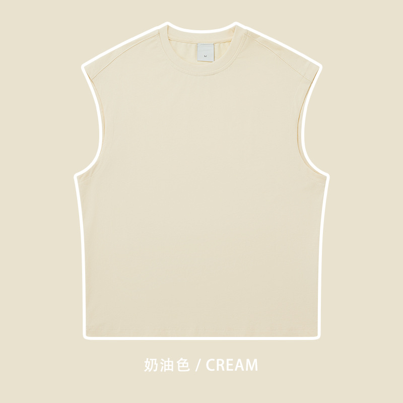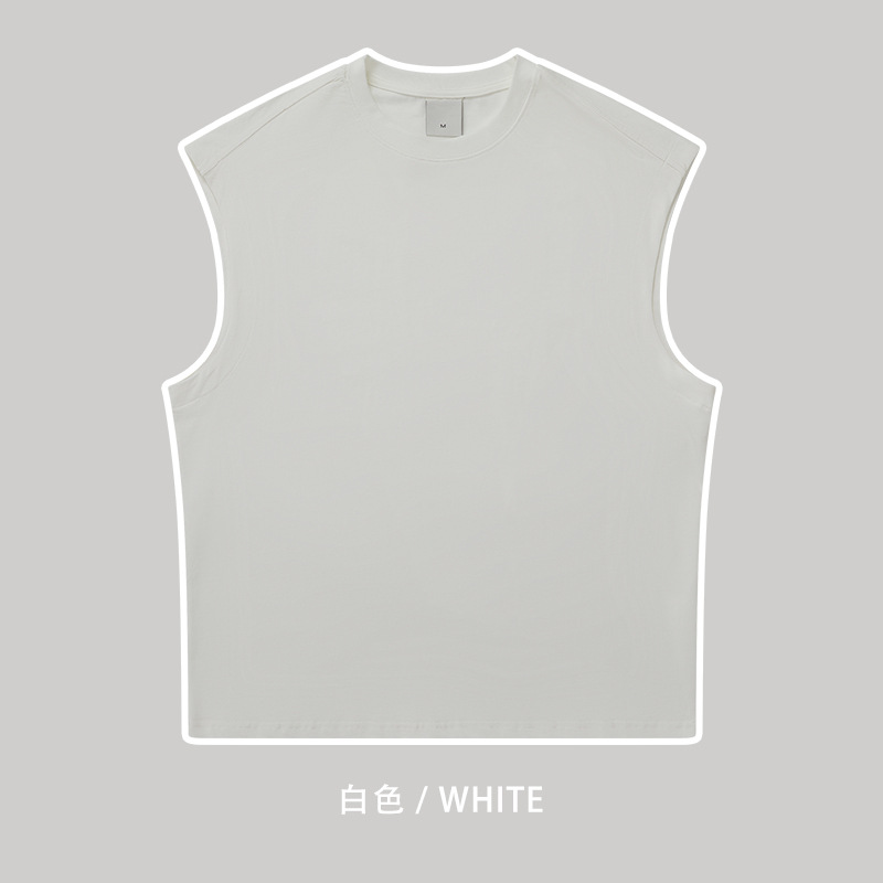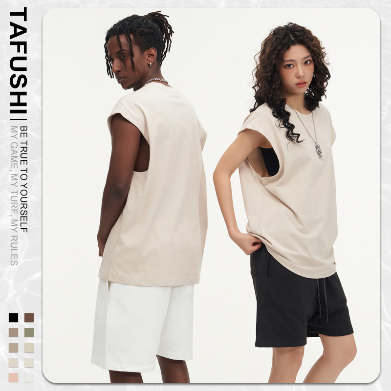 瞳安-32s双纱270G宽松无袖重磅纯棉短袖t恤男女同款运动背心情侣