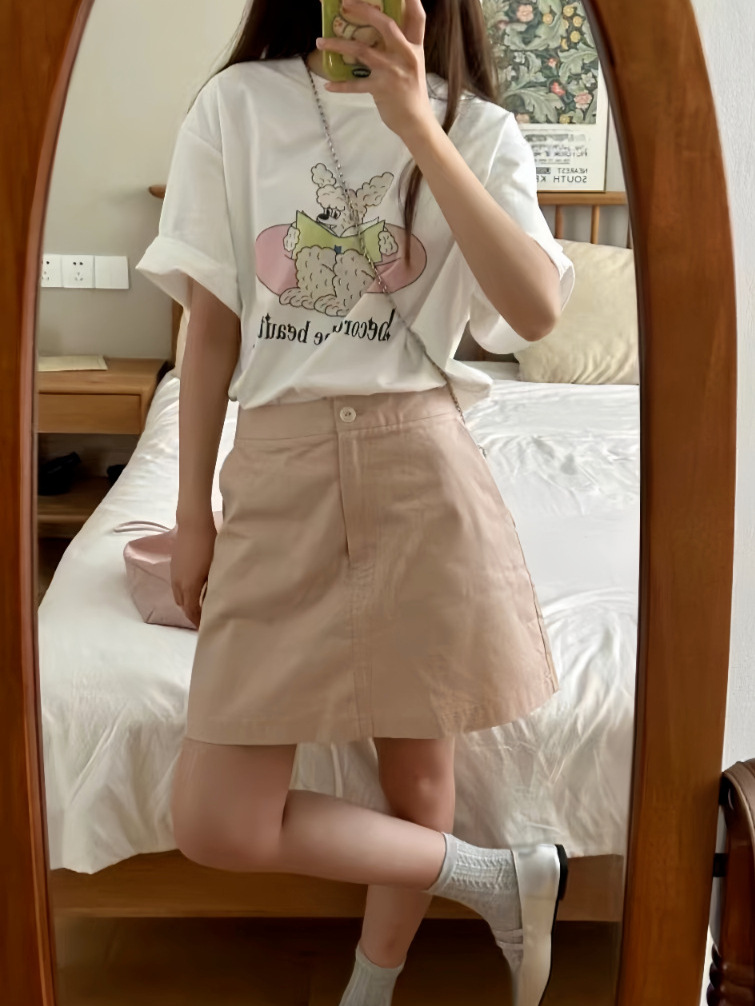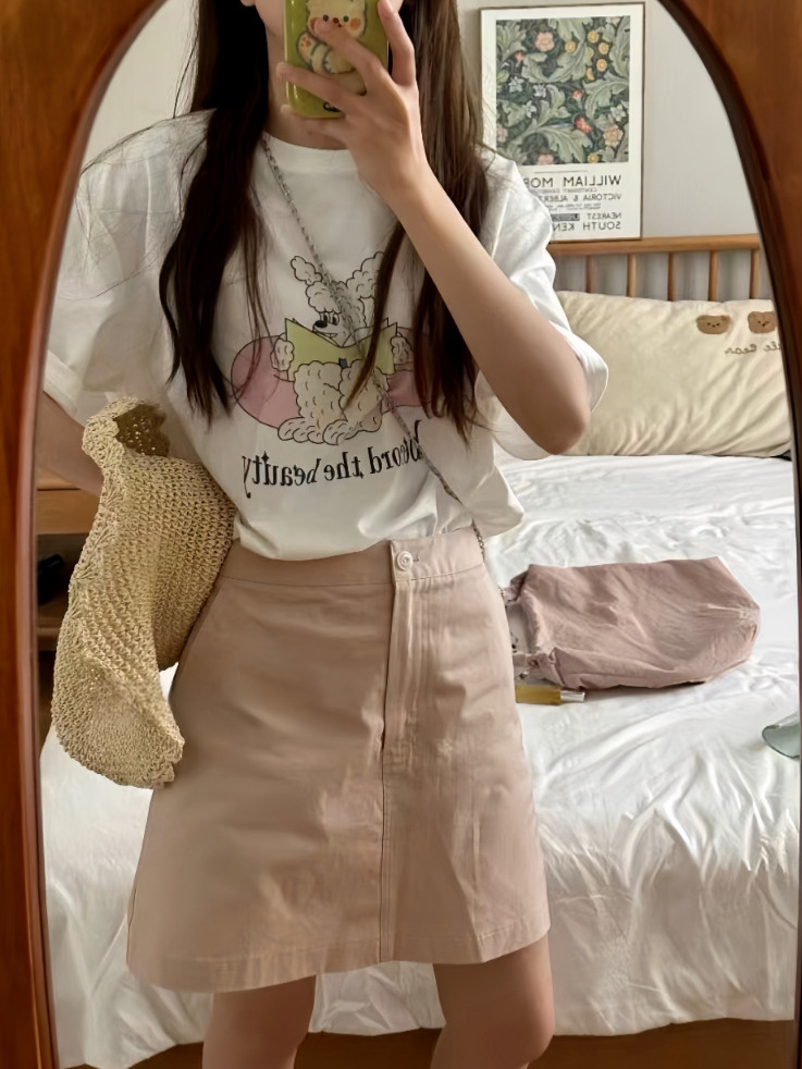 夏季新品小众宽松圆领短袖卡通印花T恤棉花小兔宽松韩风上衣