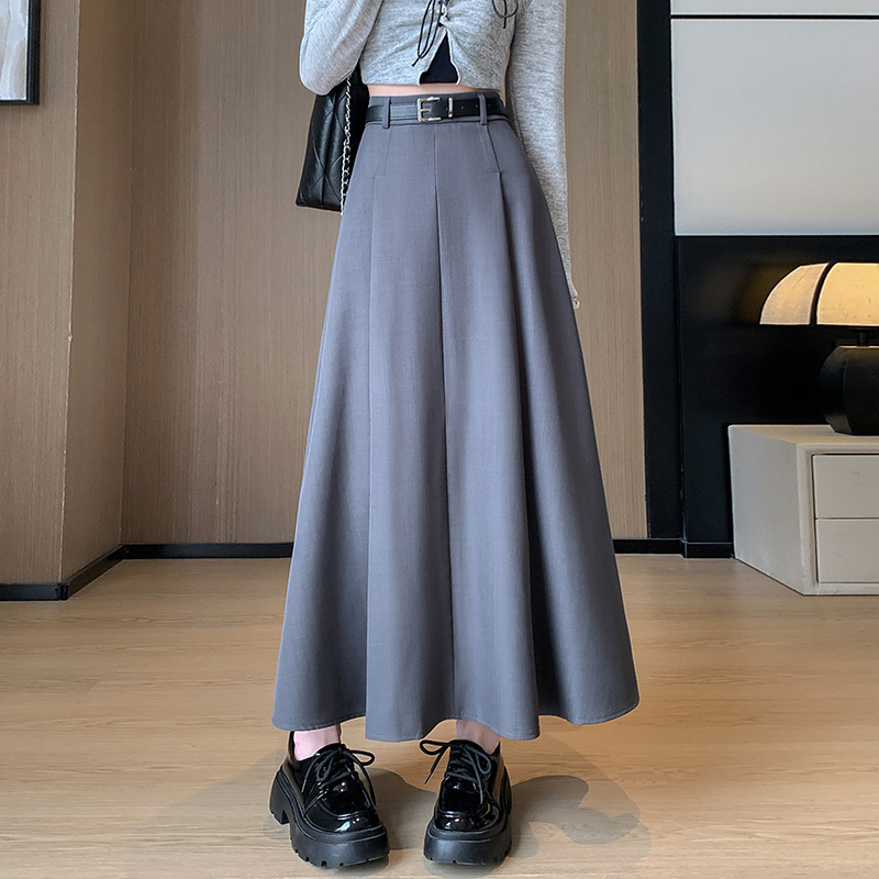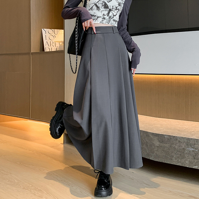半身裙女春夏季新款百褶裙西装面料高腰显瘦A字中长裙高级感裙子