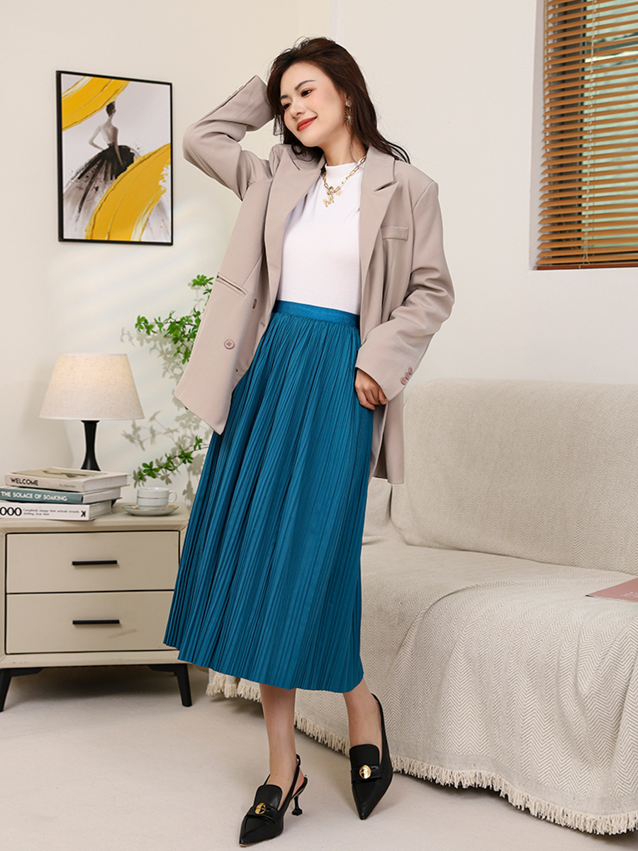 法式高级感百褶裙半身裙女夏 设计感小众中长款欧货压褶大摆A字裙