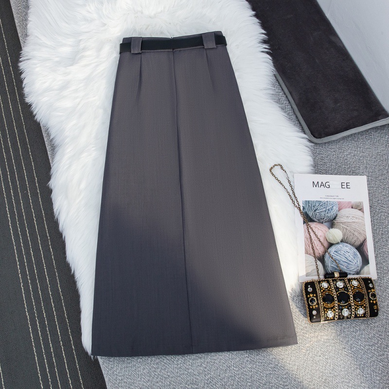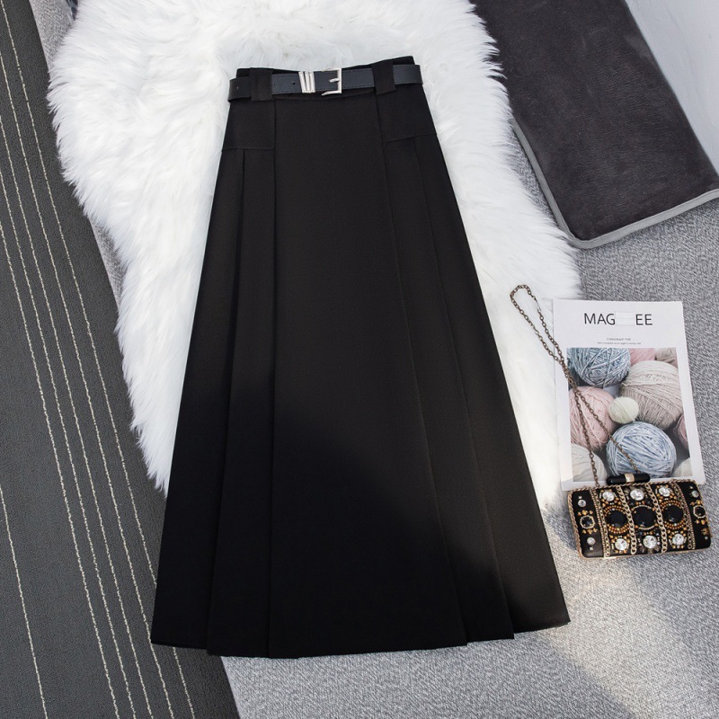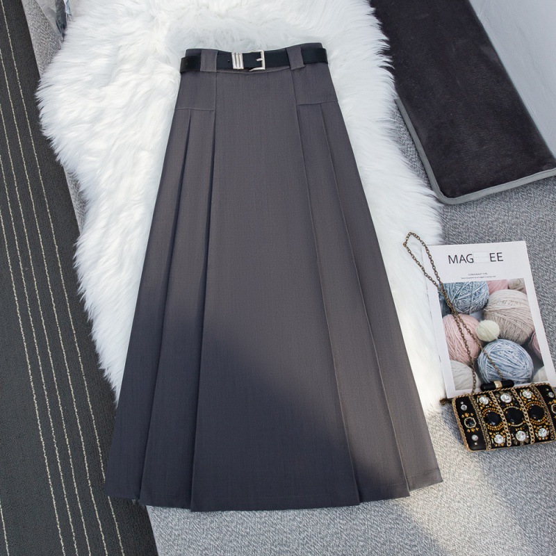 高级感灰色气质百褶西装半身裙女春季新款高腰显瘦a字长裙子