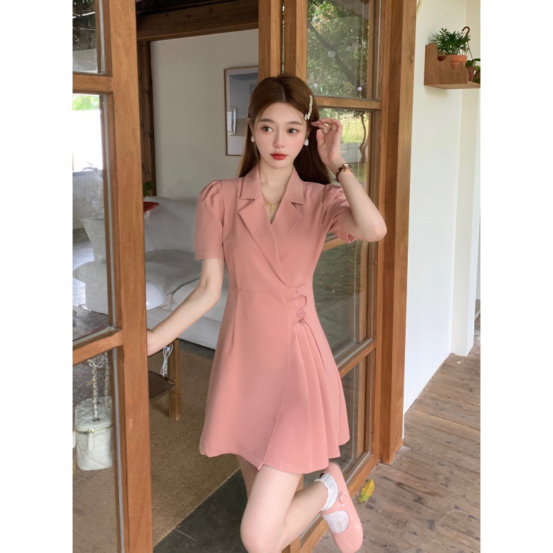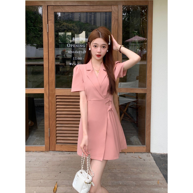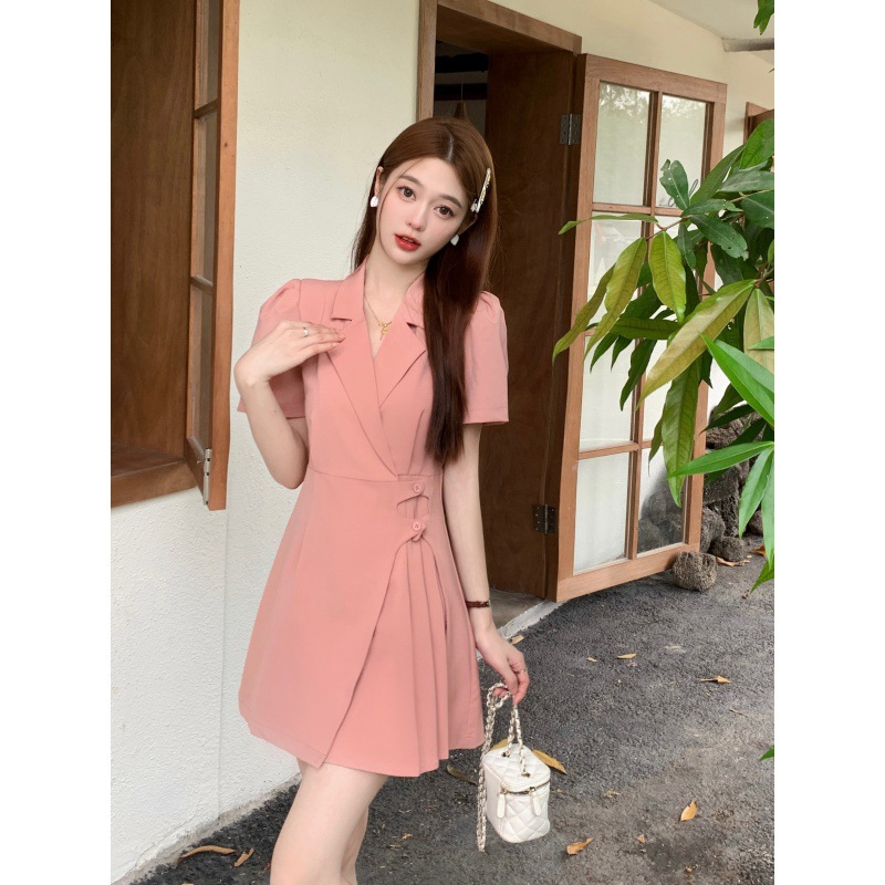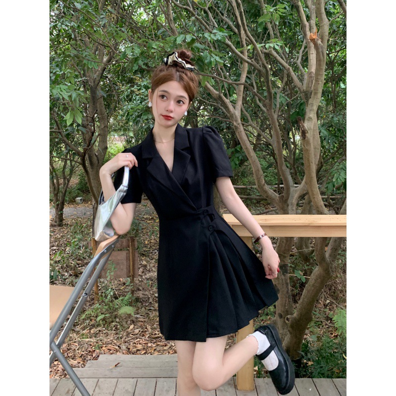 实拍 大码法式高级感不规则西装裙收腰气质百褶裙连衣裙